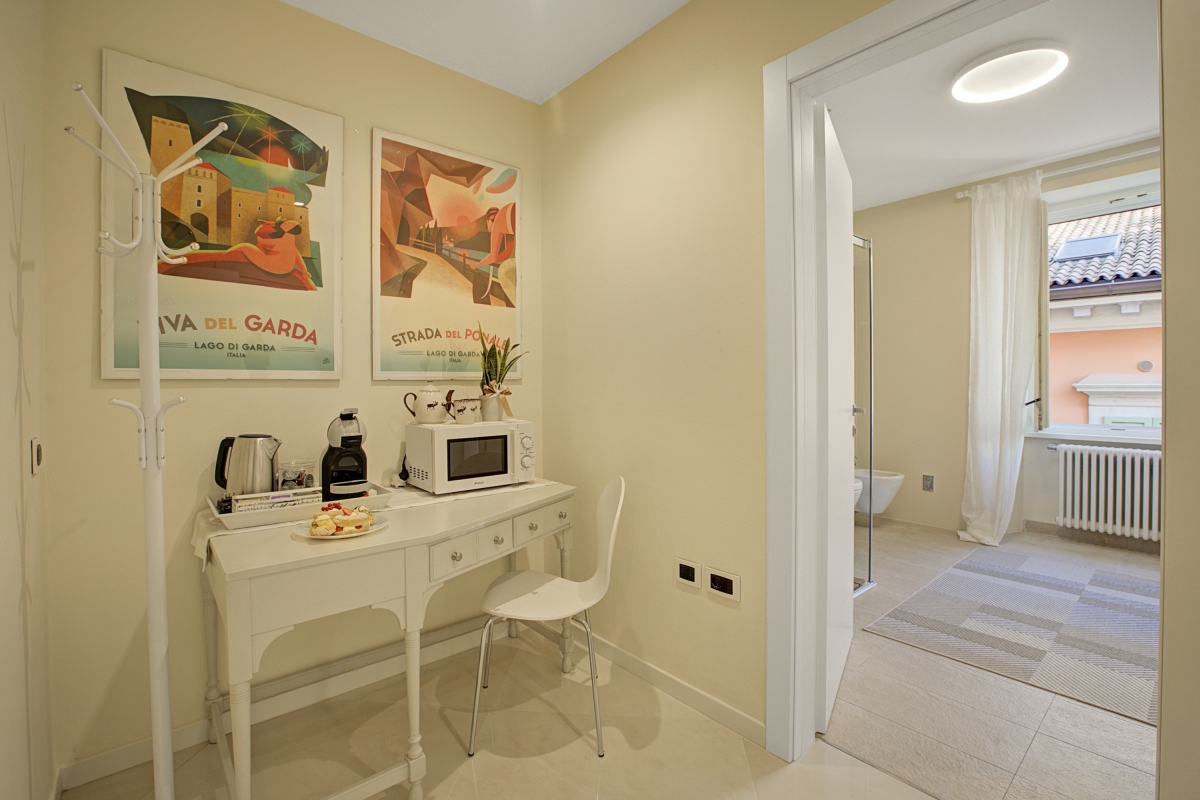 Enjoying a prime position, from where all the best things of Riva are just a stone’s throw away, this suite is really something special. It is perfect for up to 2 guests and is especially suited for a romantic holiday. From the suite’s second-floor location, you can easily catch a charming view of the famous Rocca Castle.