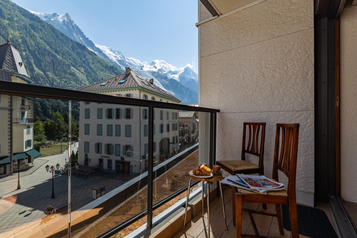 Enjoy spacious interiors and amazing Mont Blanc views from this balcony apartment in the centre of Chamonix.