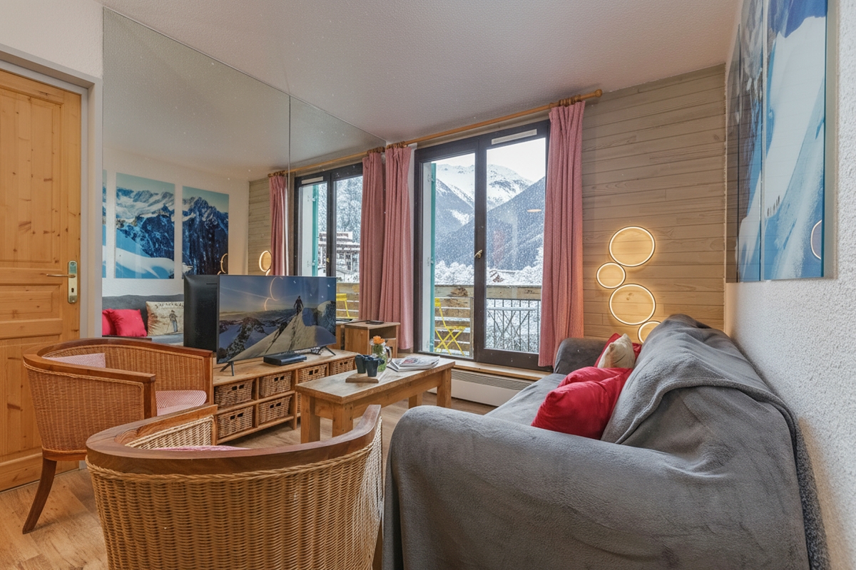 Enjoy proximity to Chamonix city centre and ski lifts from this mountain-style balcony apartment.