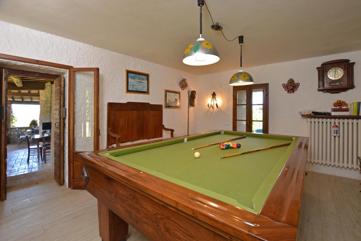 Downstairs, on the lower ground floor, you will find a full-size pool table, which leads out onto the loggia. Adjoining this, separated by a screen, is the second bedroom, with 2 single beds and another en suite bathroom.