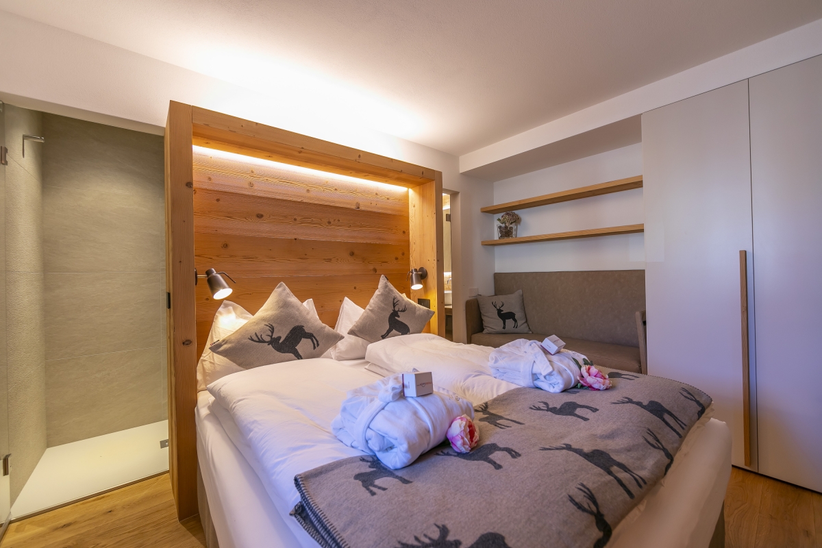 In an exclusive apartment block, this luxurious apartment sleeps 5 people. The apartment is decorated in a contemporary style, with every comfort considered, from something as practical as the boot room for wet ski-boots to the sleek, super modern kitchen. This extensive apartment has an elegant living room next to the open plan kitchen/dining area. The living room has a Smart TV and a stylish window seat by the large picture window that looks out onto the private balcony. The balcony is reached through double French windows in the dining area.