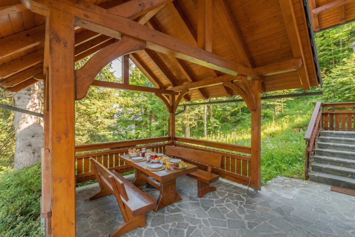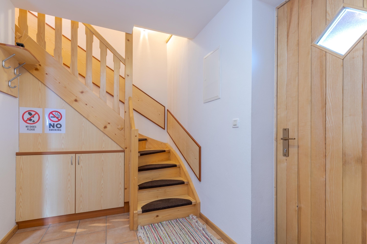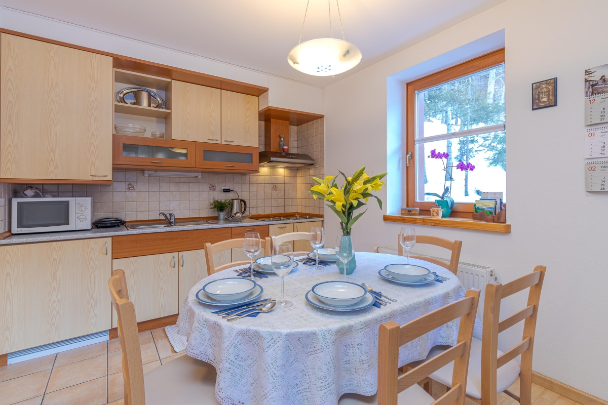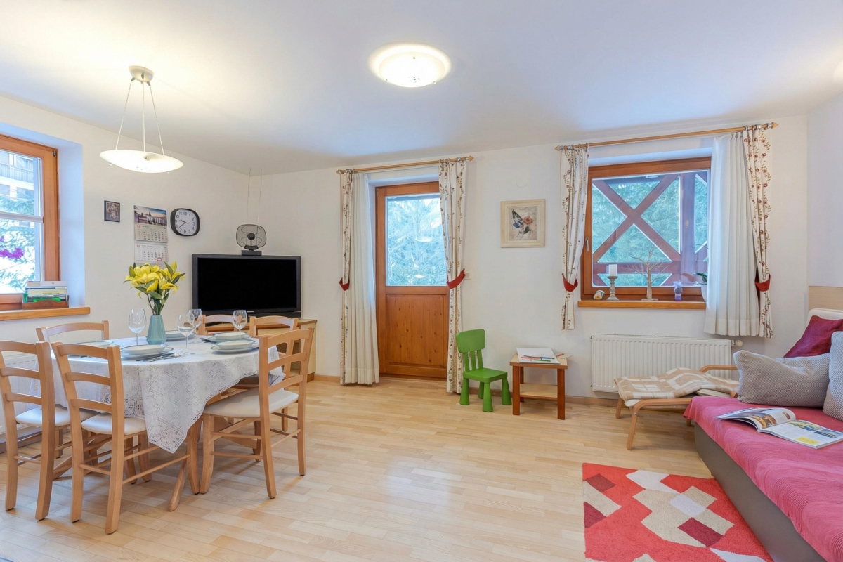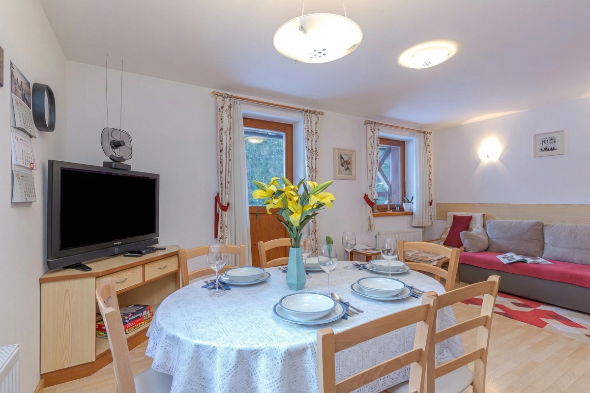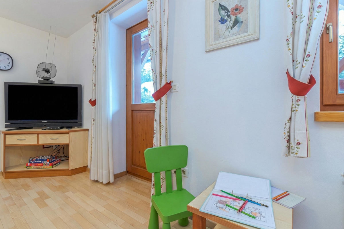 This lovely property near lake Jasna in Kranjska Gora is great for a family vacation. In summer time you can relax at the lake or nearby river Pišnica and in winter time you can enjoy skiing at the nearby slopes or sledding just behind the house.