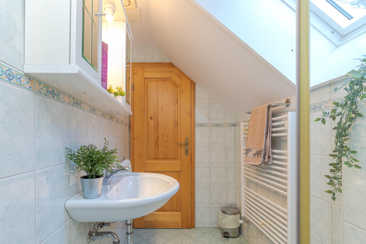 at the ground floor there is a lovely kitchen - living room area with an exit to a balcony and a toilet. Upstairs you will find two cozy bedrooms and a bathroom.