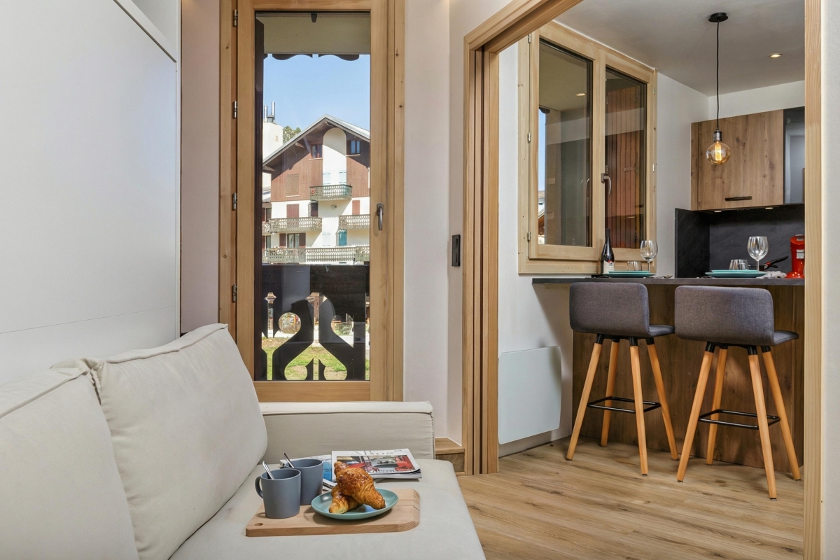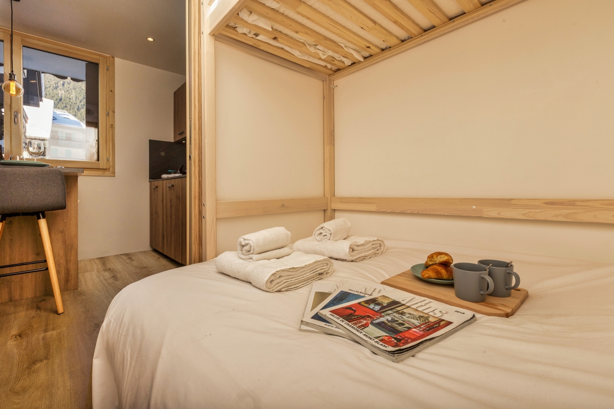 On the first floor of smart development in the heart of Chamonix, this elegantly decorated apartment can sleep 4 people.