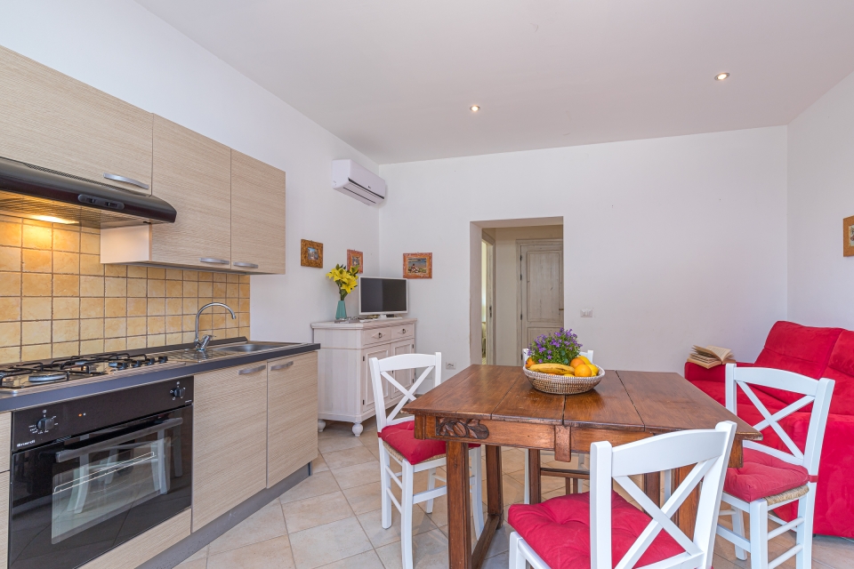 The apartment is made of quality materials according to the tradition of the territory, with granite and wood finishes and has all the characteristics to allow a comfortable and relaxing stay, immersed in the Mediterranean scrub.