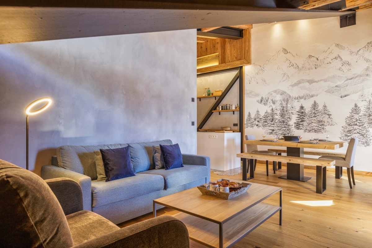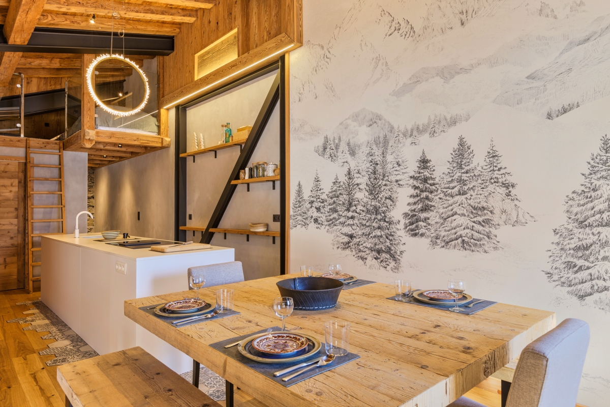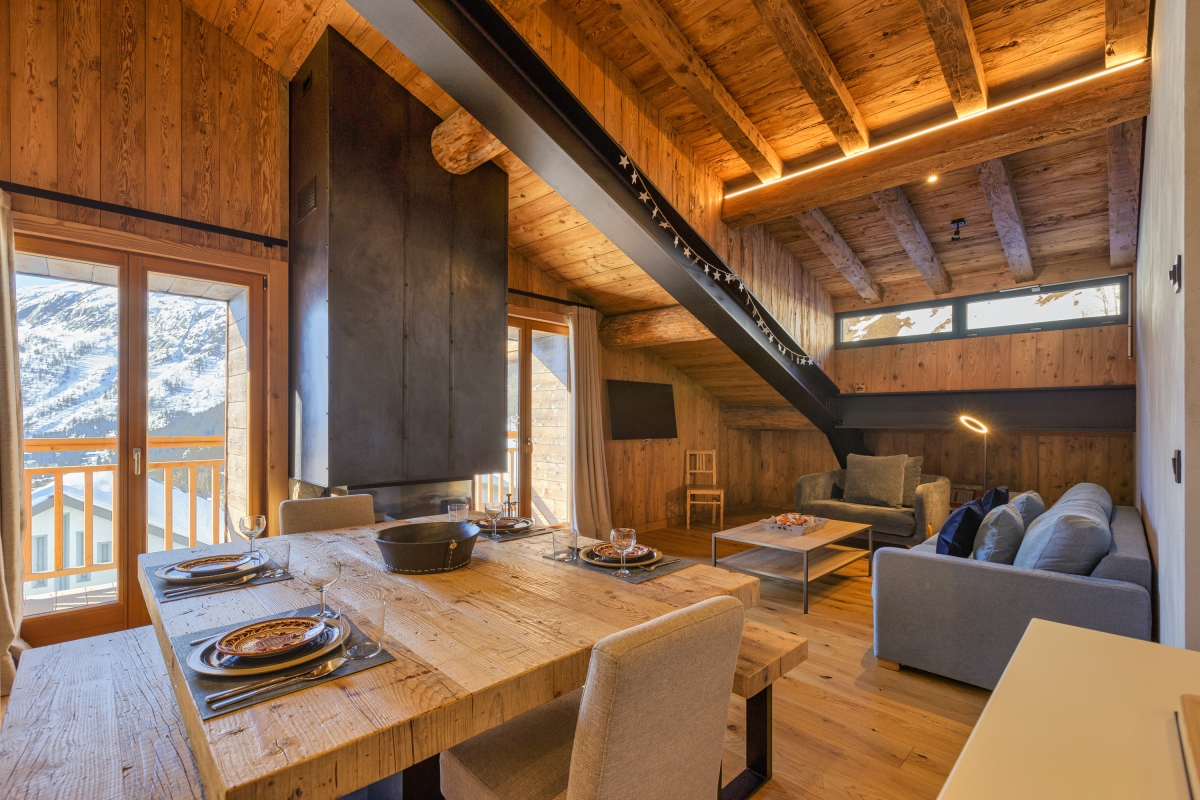 A stunning two-bedroom penthouse apartment in a traditional Savoyard chalet.