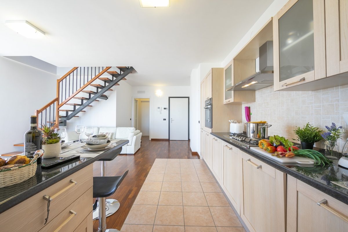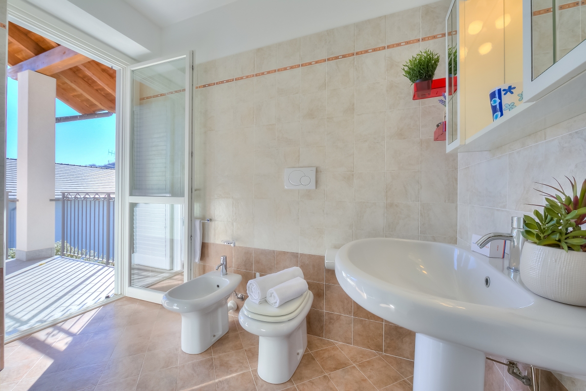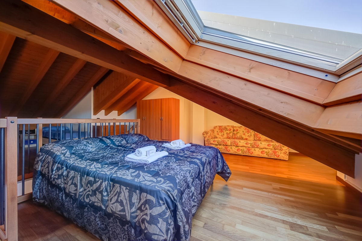 Located on the second floor and split into two comfy levels, this delightfully peaceful holiday rental with a lift offers a relaxing refuge, especially for families and elderly tourists. The penthouse has a cosy balcony with an option for dining with amazing lake views or just unwinding whilst soaking on the sun loungers and enjoying your favourite Italian wines.