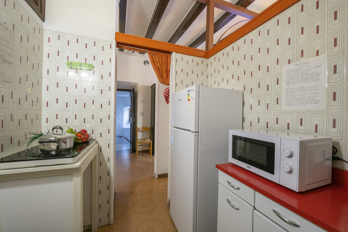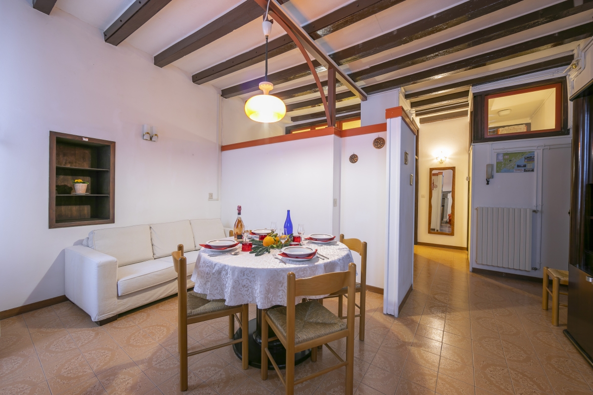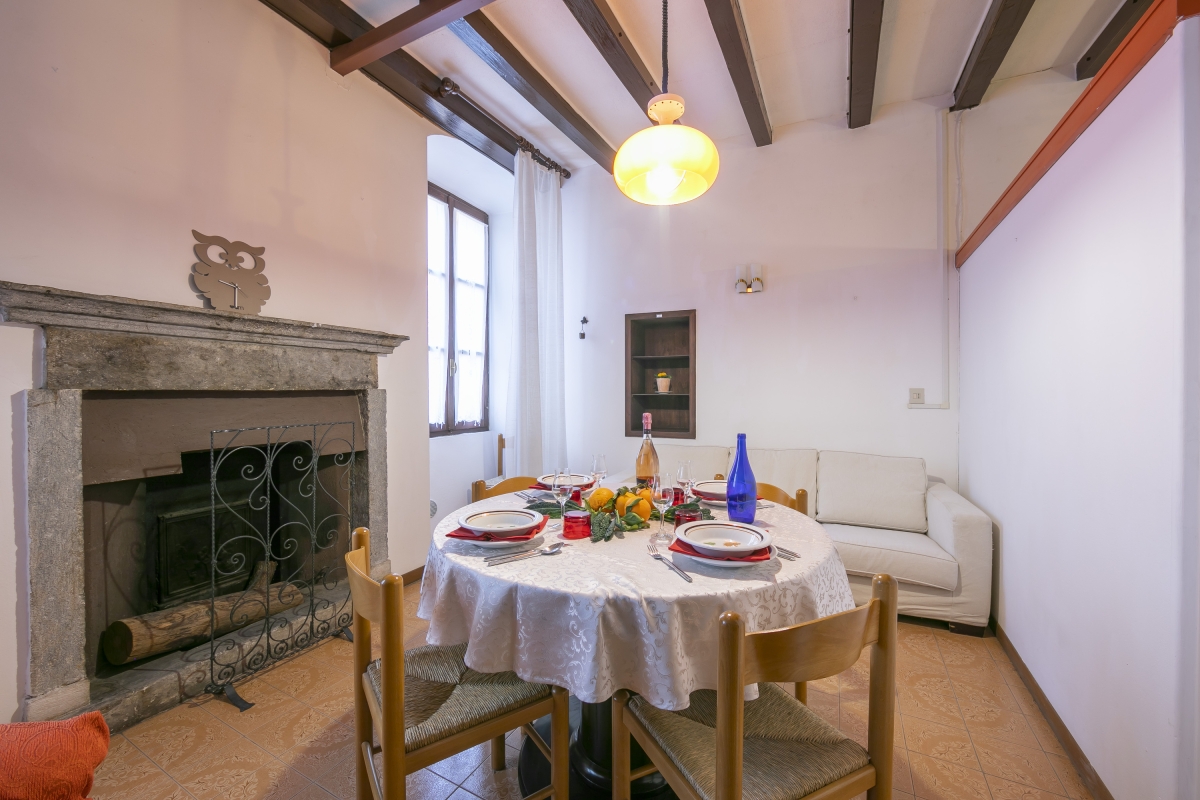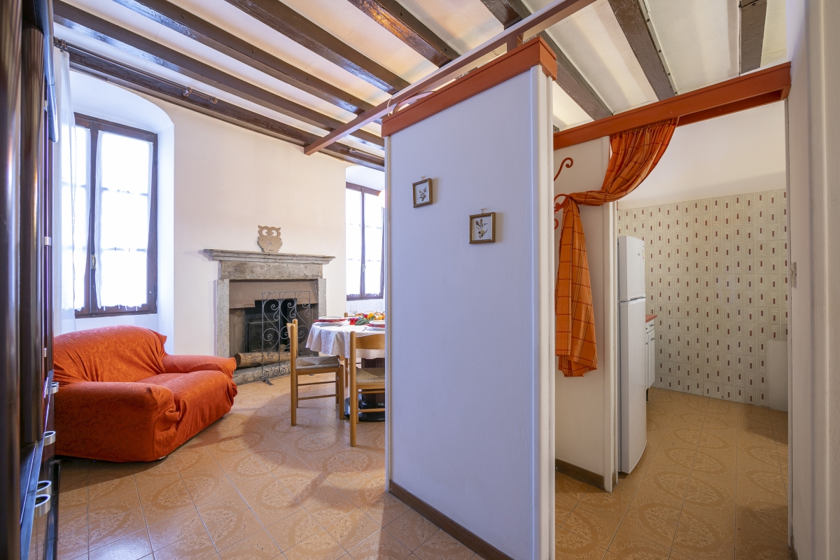The historic residence, Sergio Il Gufo, has been sensitively converted into 3 apartments. This one, Orange, retains many of the building’s original features, including a beautiful open fireplace and beamed ceilings.