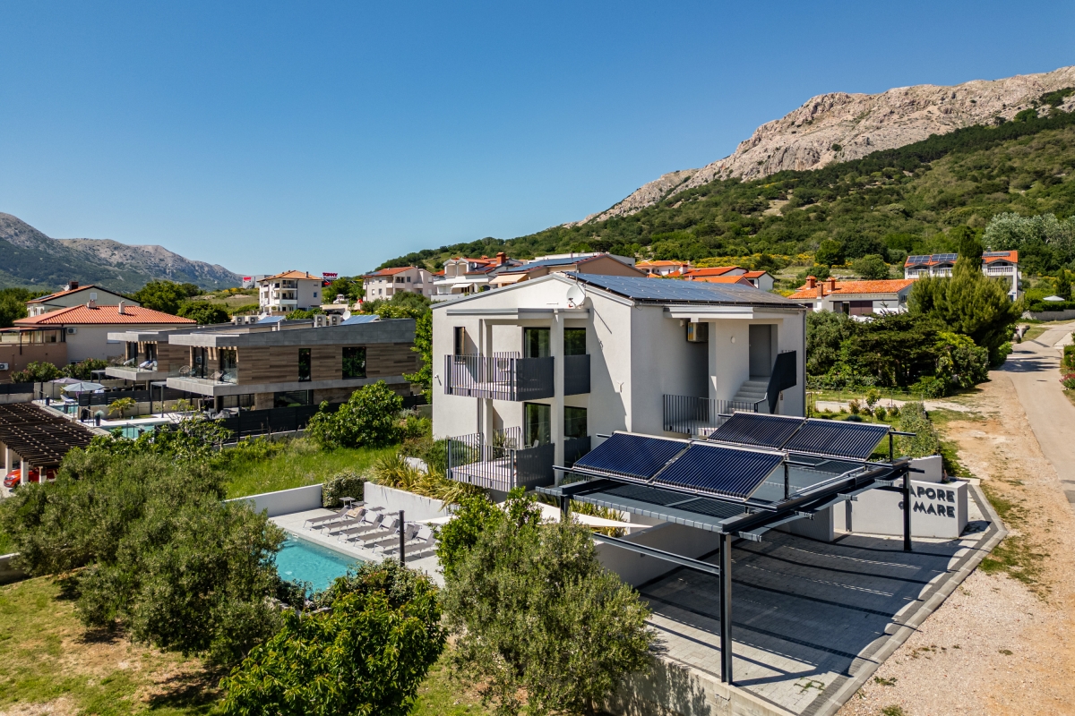 The town of Baška is home to almost 30 beaches, so you can choose and enjoy the beach that you like the best. Located at just a 3-minute drive from the holiday apartment is also a must-visit observation deck (also great for a hike), from where you can soak up magnificent and breathtaking panoramas of the land, mountains, and sea. Vrbnik, known for its authentic charm, and the main city of the island, Krk, are within a 25-minute driving distance from here. The Krk Island bridge is half an hour away and the nearest international airport is in Rijeka, approximately a 40-minute drive from this apartment in Baška.