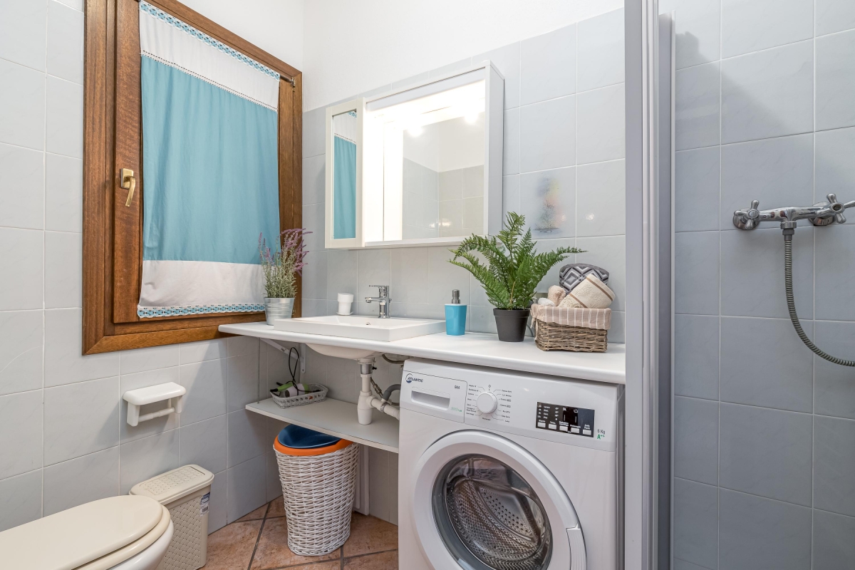 It has a washing machine, dishwasher, TV, oven, microwave, refrigerator, freezer, toaster, Moka coffee machine.