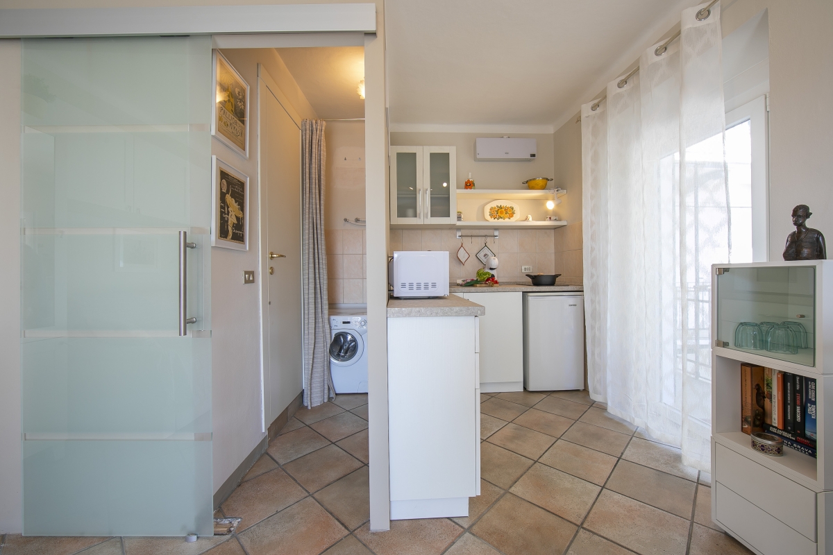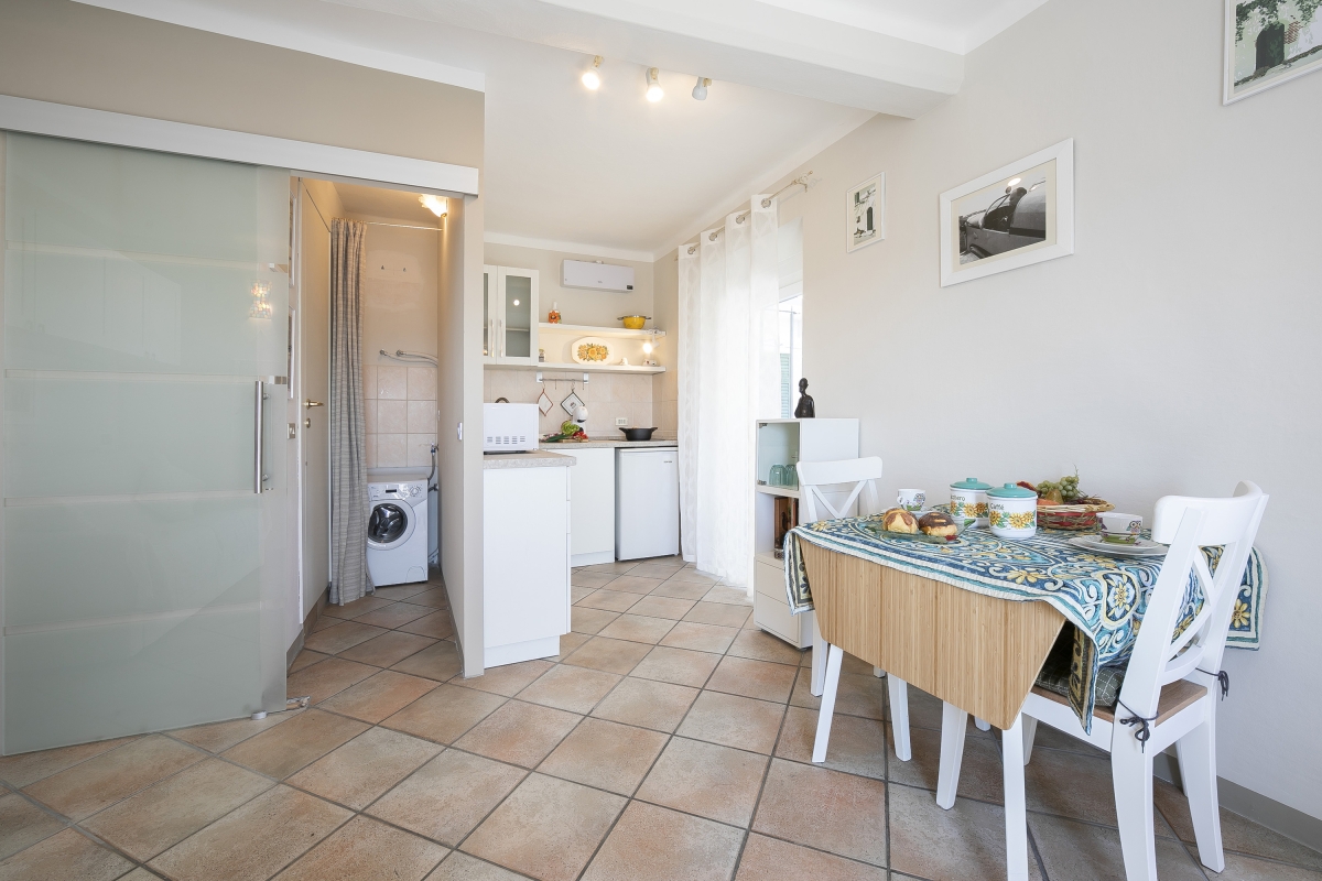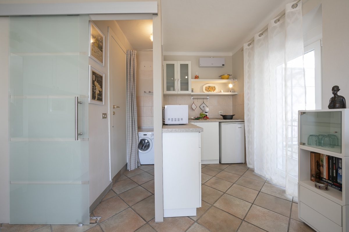 Located within convenient walking distance of the lake, this second-floor balcony studio in Lesa is ideal to unwind away from the hustle-bustle of city life. The apartment offers a panoramic-view balcony, where you can taste the first sip of your morning coffee or enjoy an aperitif in the calming atmosphere. Inside, the modern holiday rental is equipped with every comfort to ensure a carefree, self-catering lake stay. There is a flat-screen HDTV and a kitchenette with a dining table to prepare and enjoy meals at your own sweet pace. A microwave, Dolce Gusto coffee machine, induction hob and a fridge are available for guests’ comfort and convenience.