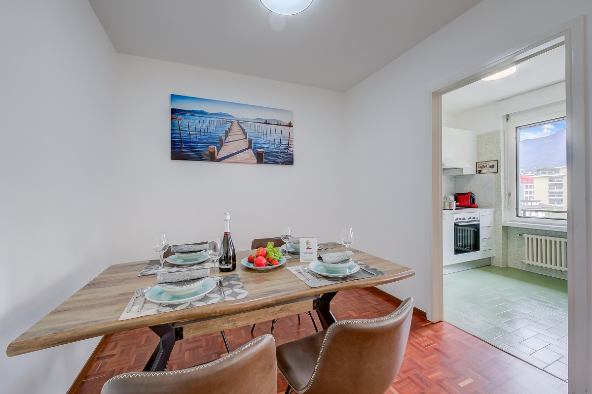 The comfortable and practical holiday apartment enjoys one of the most enviable positions in Locarno, from where you can explore everything on foot. Just a stone’s throw away are several restaurants, Piazza Grande with its vibrant shops, open-air terraces and gelaterias, and supermarkets. Also within a 2-minute walk are Locarno’s Lungalago with a lakeside promenade for romantic evening strolls, Lido di Locarno, the beautiful Fontana Pedrazzini and the funicular to the iconic Madonna del Sasso.