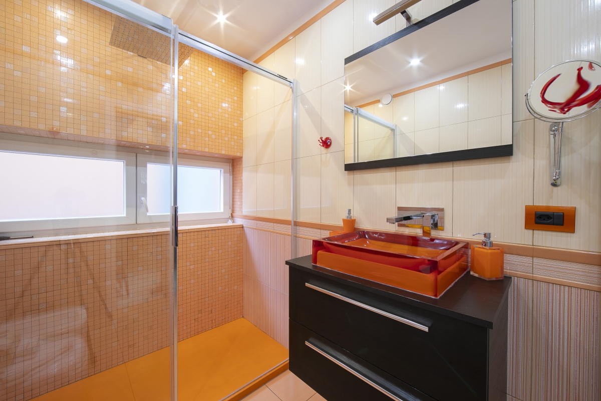 Bathroom 1: A luminous bathroom featuring a bath with shower, WC and bidet.