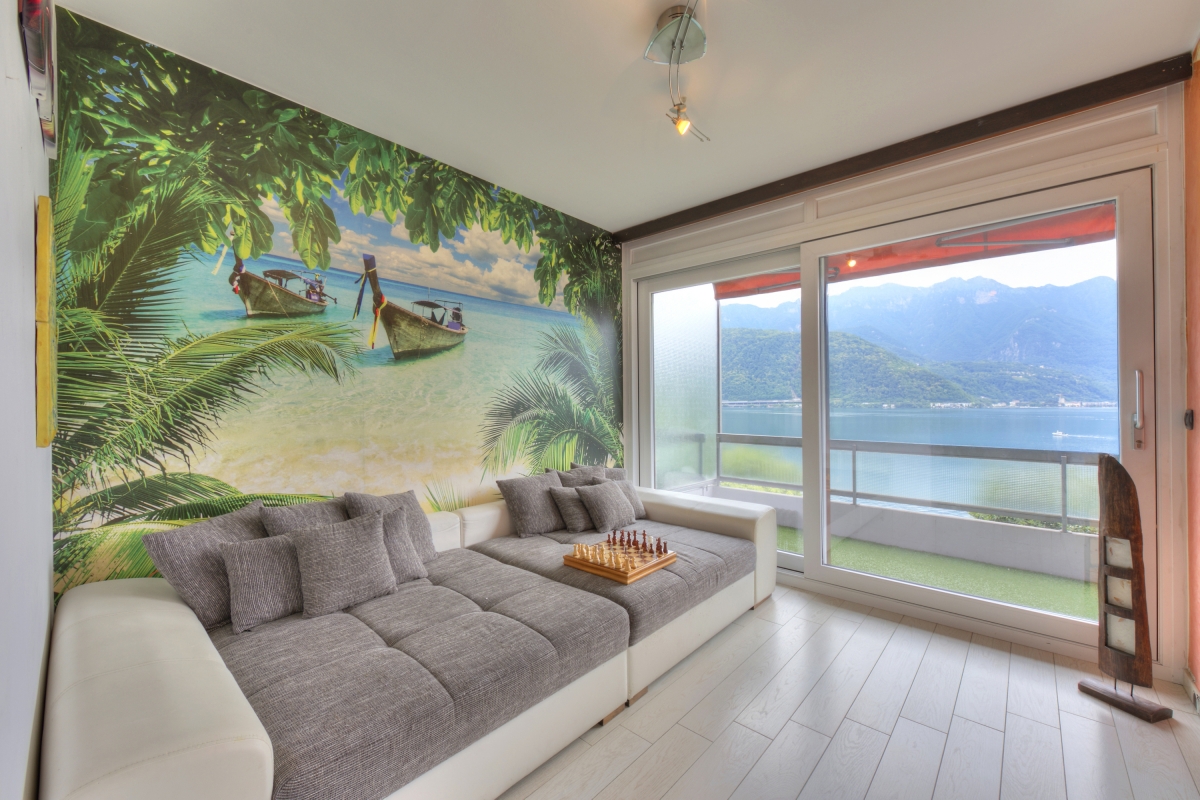 The holiday apartment is located in the lakeshore village of Melide and enjoys a well-serviced location from where a wide range of restaurants, Lido di Melide and a supermarket are within an easy 10-20 minutes walking away. The ferry terminal of Bissone is also close by and the transit from Melide – connecting to Lugano, Paradiso and more – is a 20-minute walk from here.
