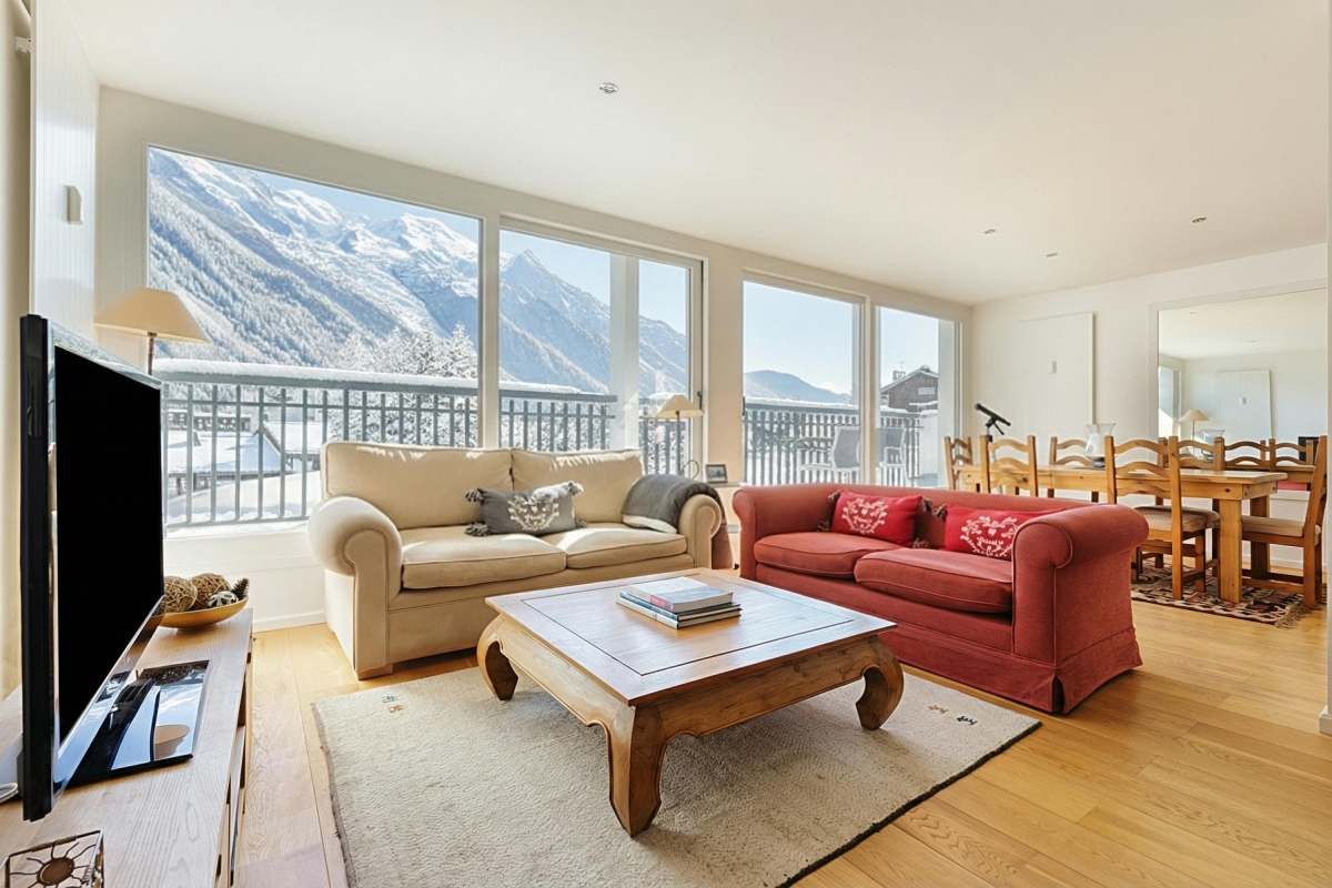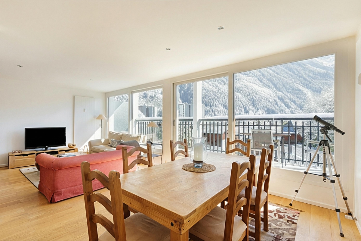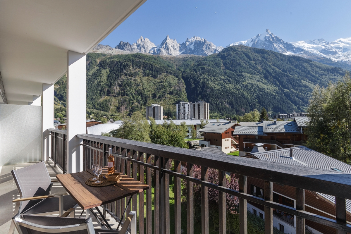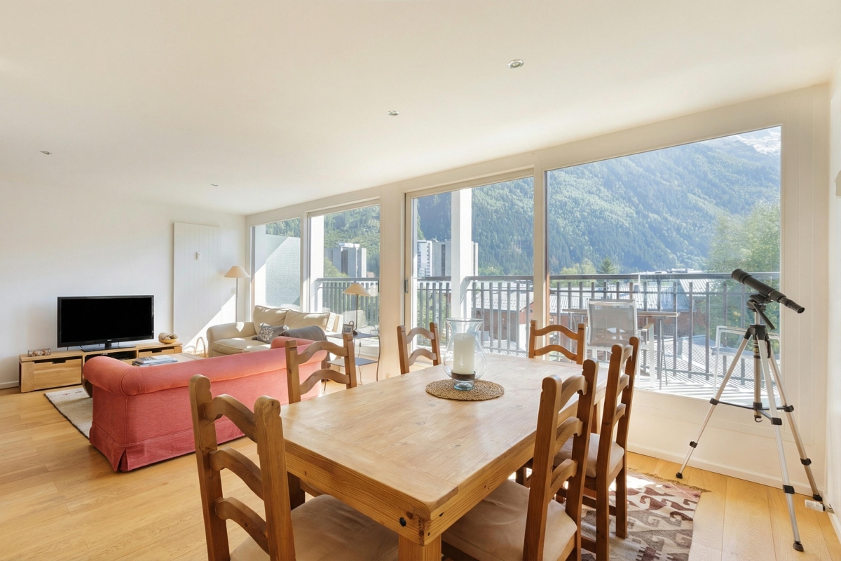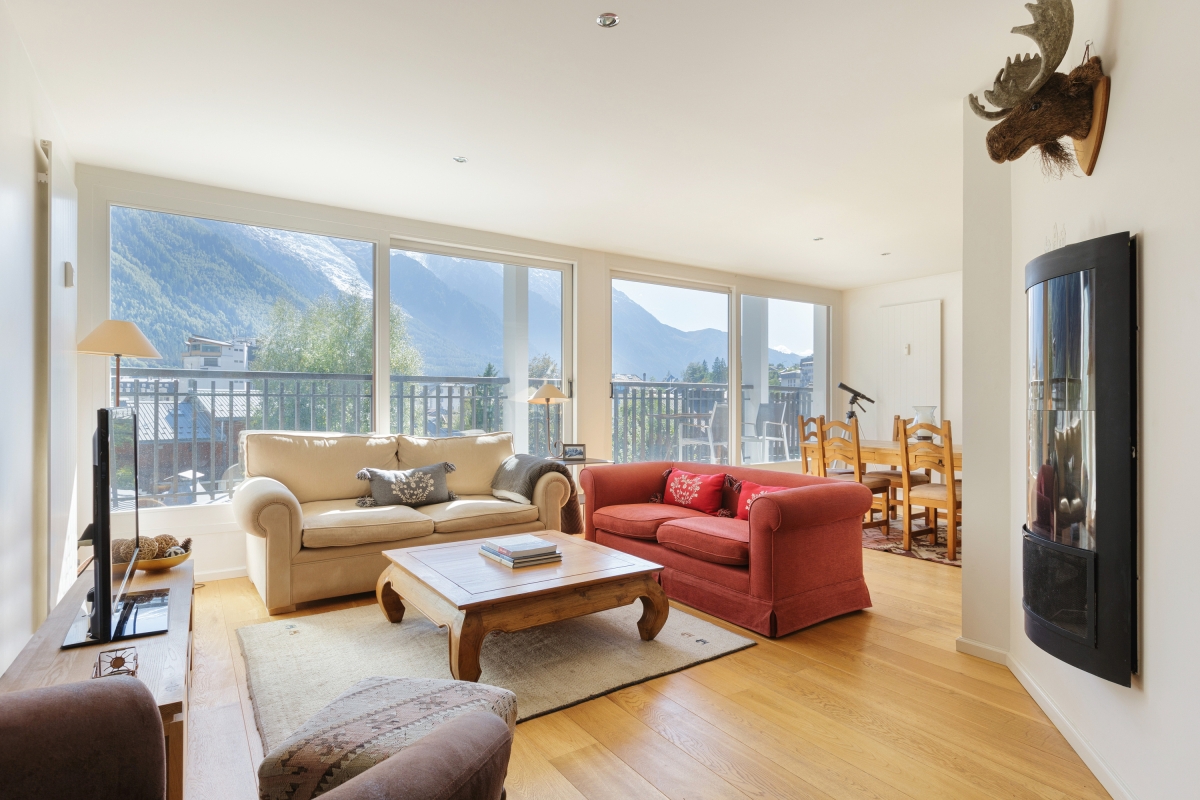 A spacious modern apartment in the heart of Chamonix, with a large balcony with magnificent views of the mountains.