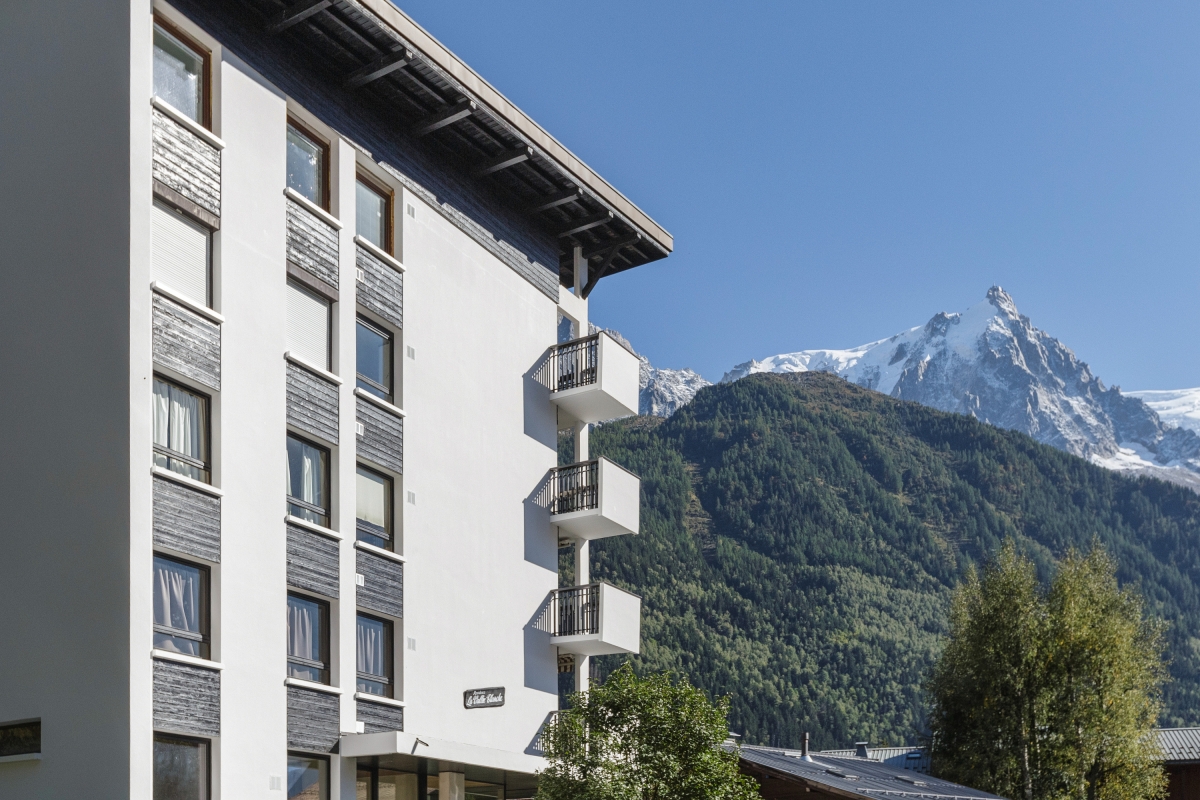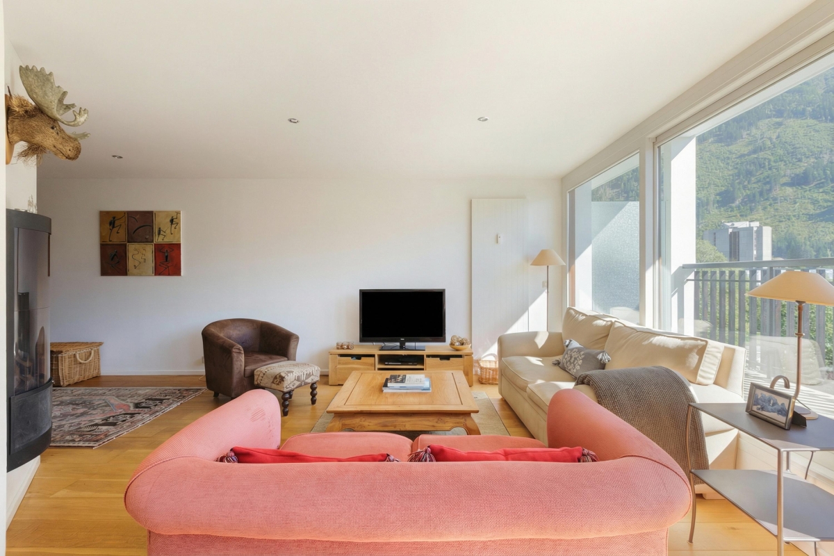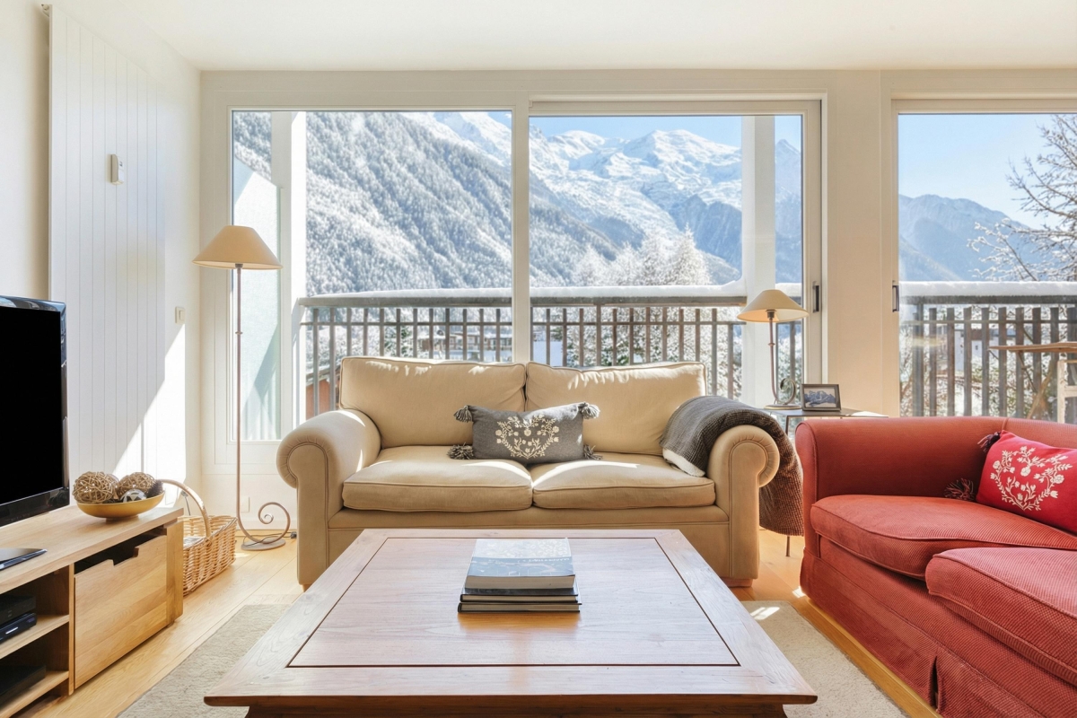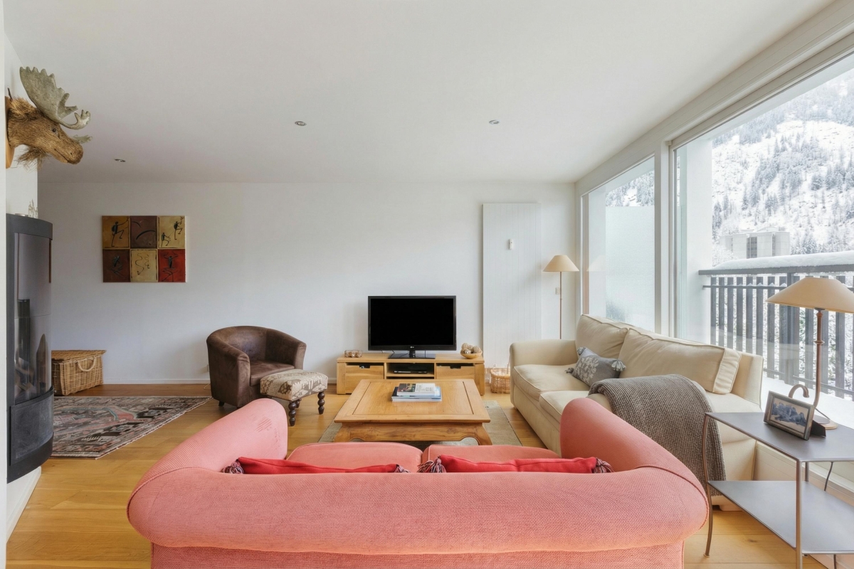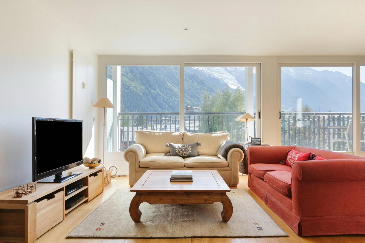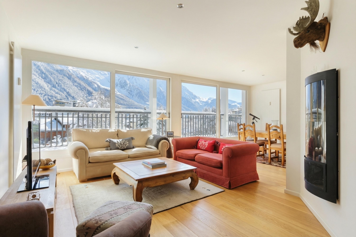 A spacious modern apartment in the heart of Chamonix, with a large balcony with magnificent views of the mountains.