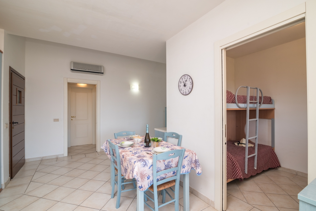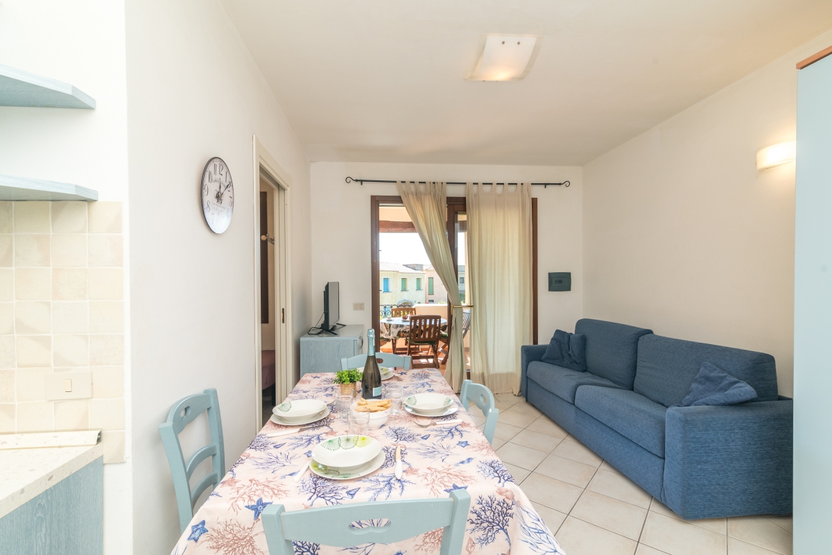 This first-floor apartment, in the Residence Il Borgo, makes an idyllic retreat for families and friends. Just 700m from the beach and 150m from shops, it serves as an ideal base for a luxurious holiday in the charming resort of Loiri Porto San Paolo.