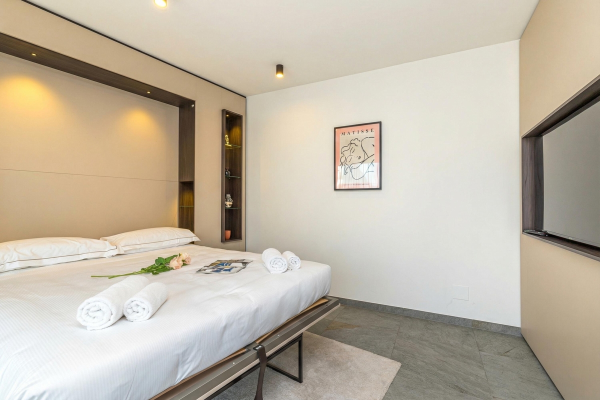 A stylish studio apartment on the second floor of a striking, contemporary residence in northern Lugano, a 20-minute walk from the shores of Lake Lugano.