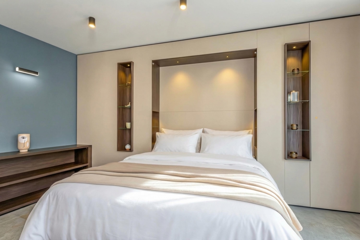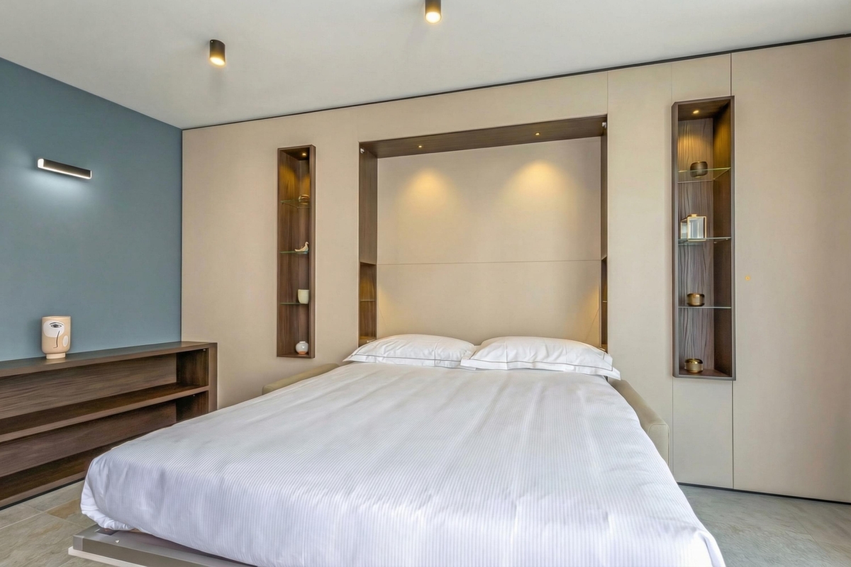 There is a comfortable pull-down double bed in the living room.