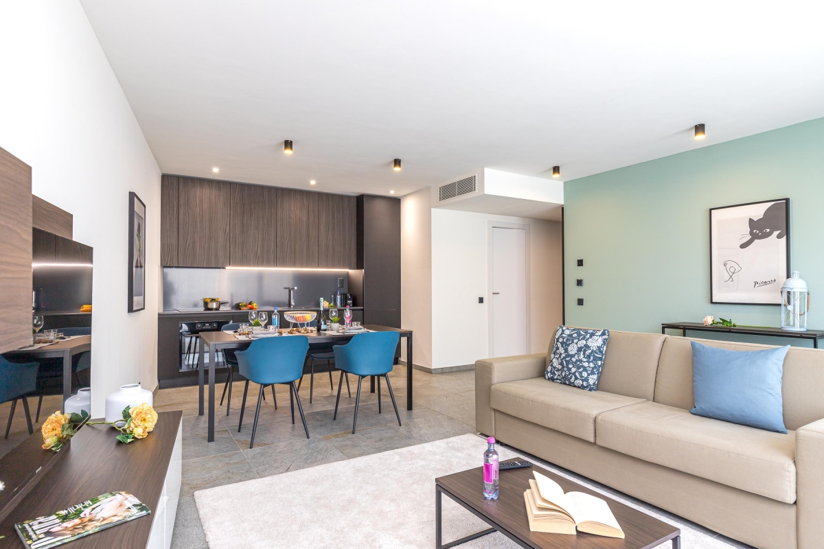 On the fourth floor of a luxurious new development, this bright apartment offers the ideal base for either business travel or the perfect city break.