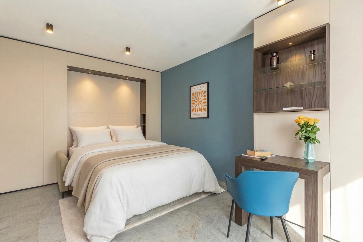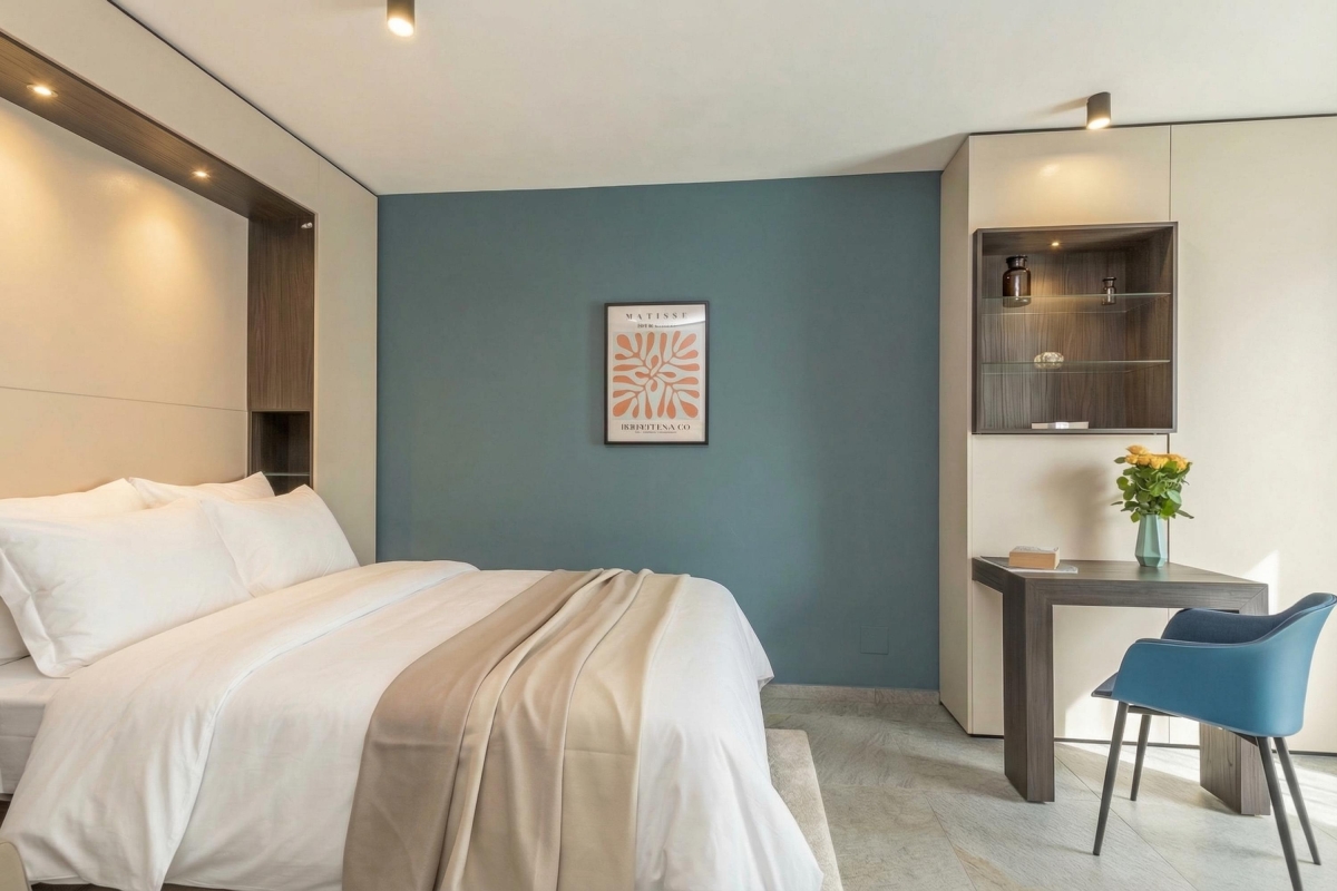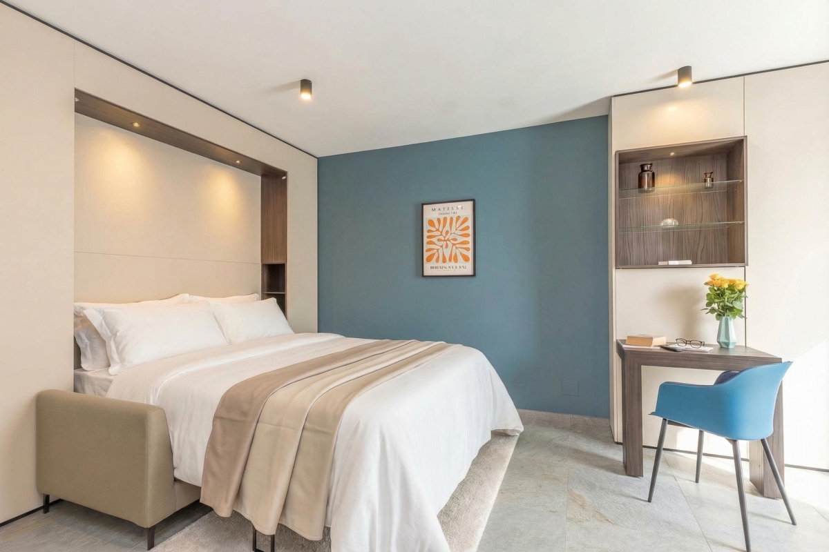 An ideal base from where to explore Lugano, this chic studio apartment is on the fifth floor of a striking residence in a central, but quiet, neighbourhood.