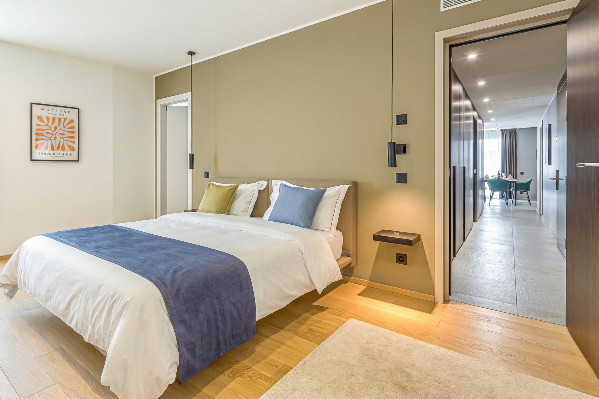 The ultimate residence, which caters to people visiting Lugano for business and leisure. Guests staying in this Executive Suite can benefit from all the communal facilities including a co-working space, a ground floor restaurant and bar with outdoor seating, a gym, and separate storage space.