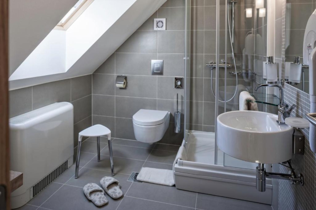 Bathroom 2 (Top Floor): Ensuite with shower, sink, toilet.