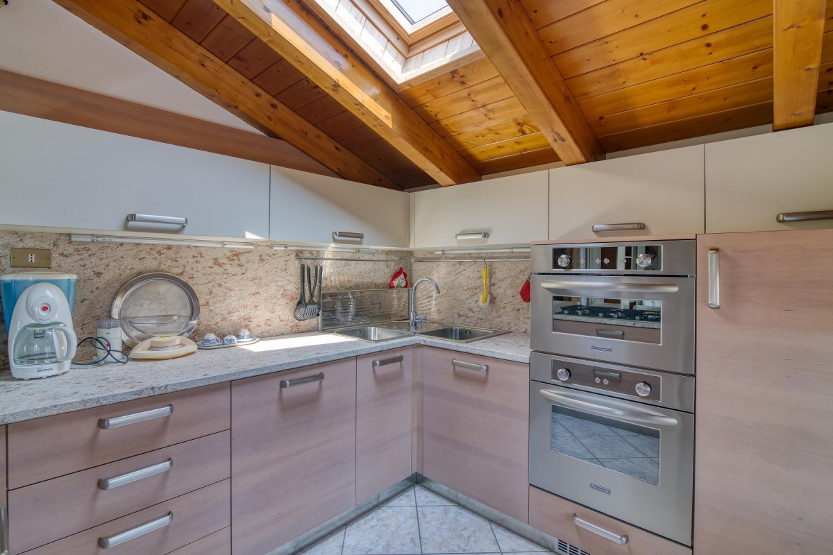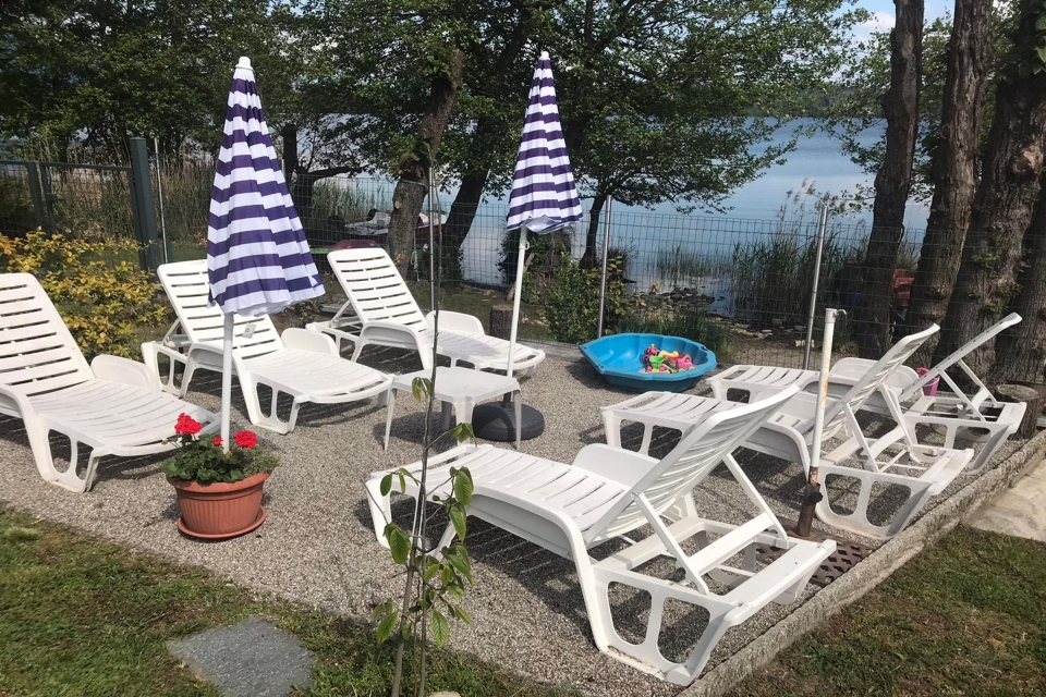 Peacefully located on the top floor of a newly built, rustic-style villa this spacious apartment comfortably sleeps four guests and enjoys the use of a pretty lakeside garden with sun loungers and an alfresco dining area. Guests can also enjoy a private beach where they will find a bathroom with a shower. The beach is 800m from the apartment and access can be arranged directly with the owners who live in the ground-floor apartment.