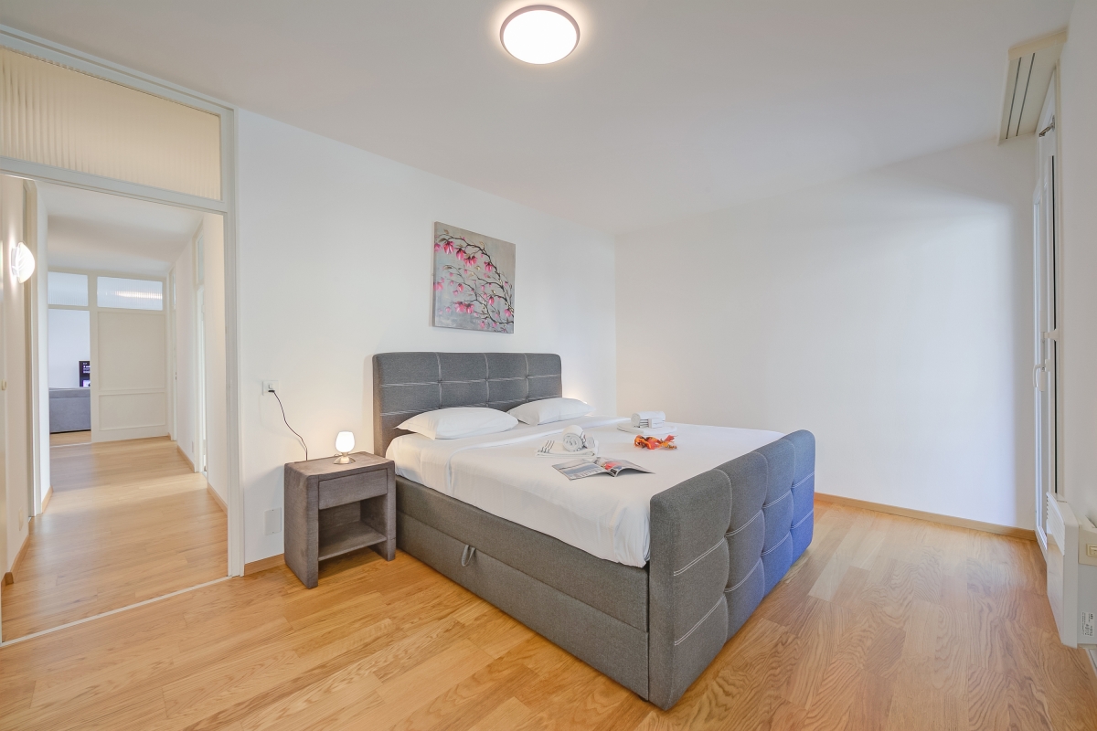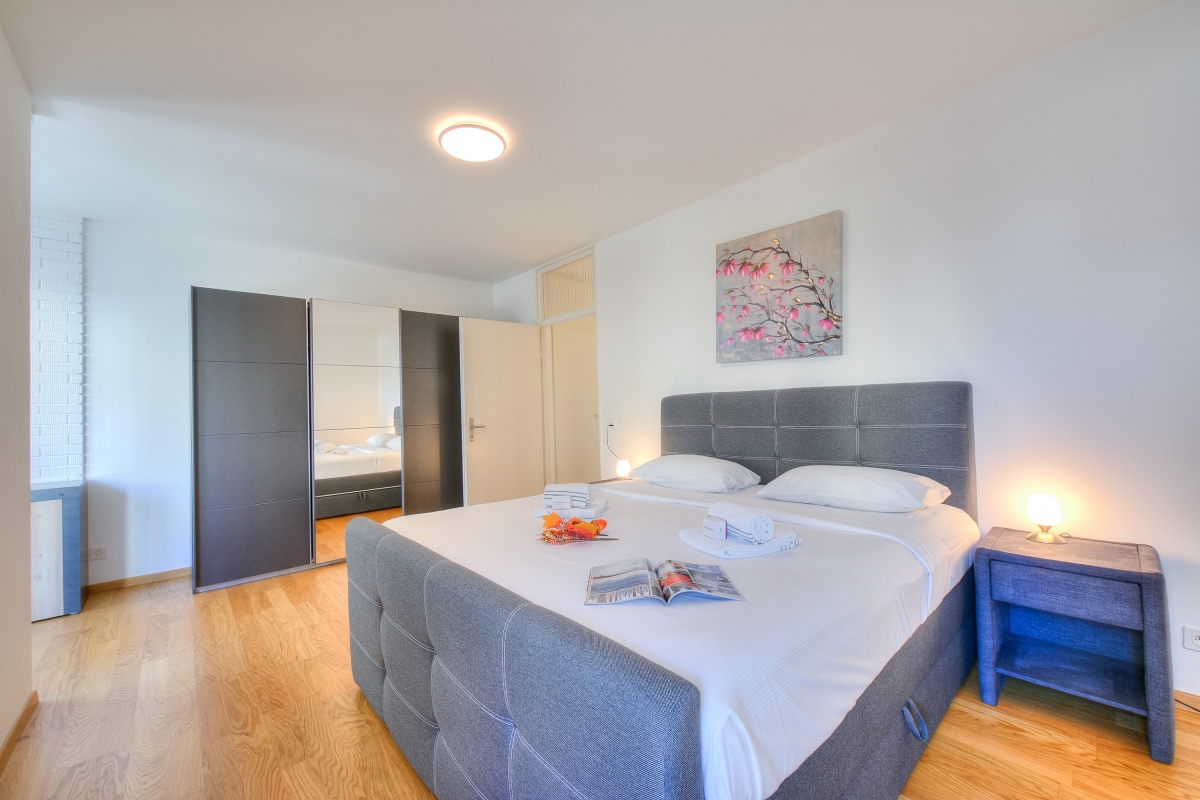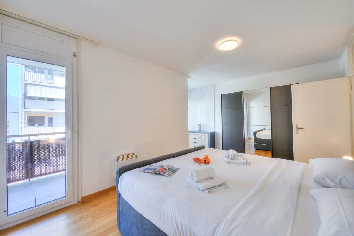The holiday apartment enjoys one of the most prime and well-connected locations in Locarno, from where you can explore everything on foot. Just a stone’s throw away are located several restaurants, Piazza Grande with its vibrant shops, open-air terraces and gelaterias, supermarkets and the glimmering shores of Lake Maggiore. Also within a 5-minutes walk are Locarno’s Lungalago with a lakeside promenade for romantic evening strolls, the beautiful Fontana Pedrazzini and the funicular to the iconic Madonna del Sasso. For our active guests, the Lido di Locarno, a golf course and the famous Locarno Falconry are a 15-20-minute walk away.