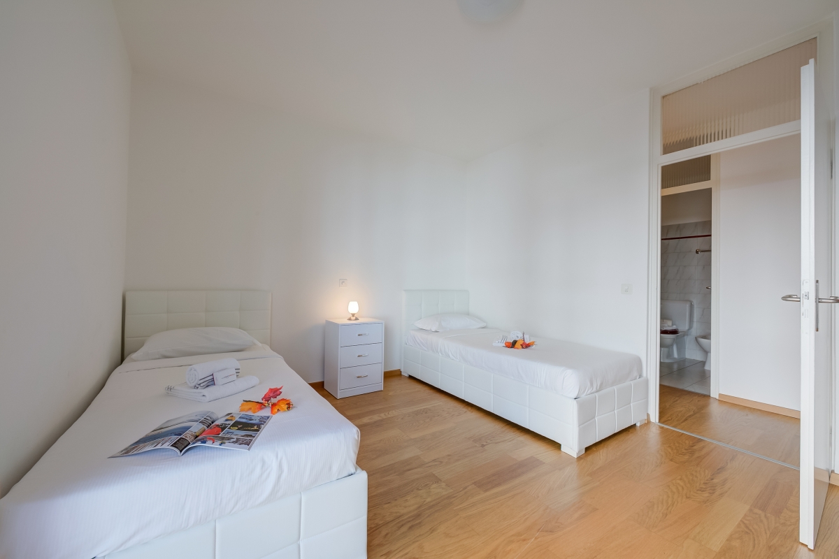 Bedroom 2: A twin bedroom with 2 single beds and a wardrobe.