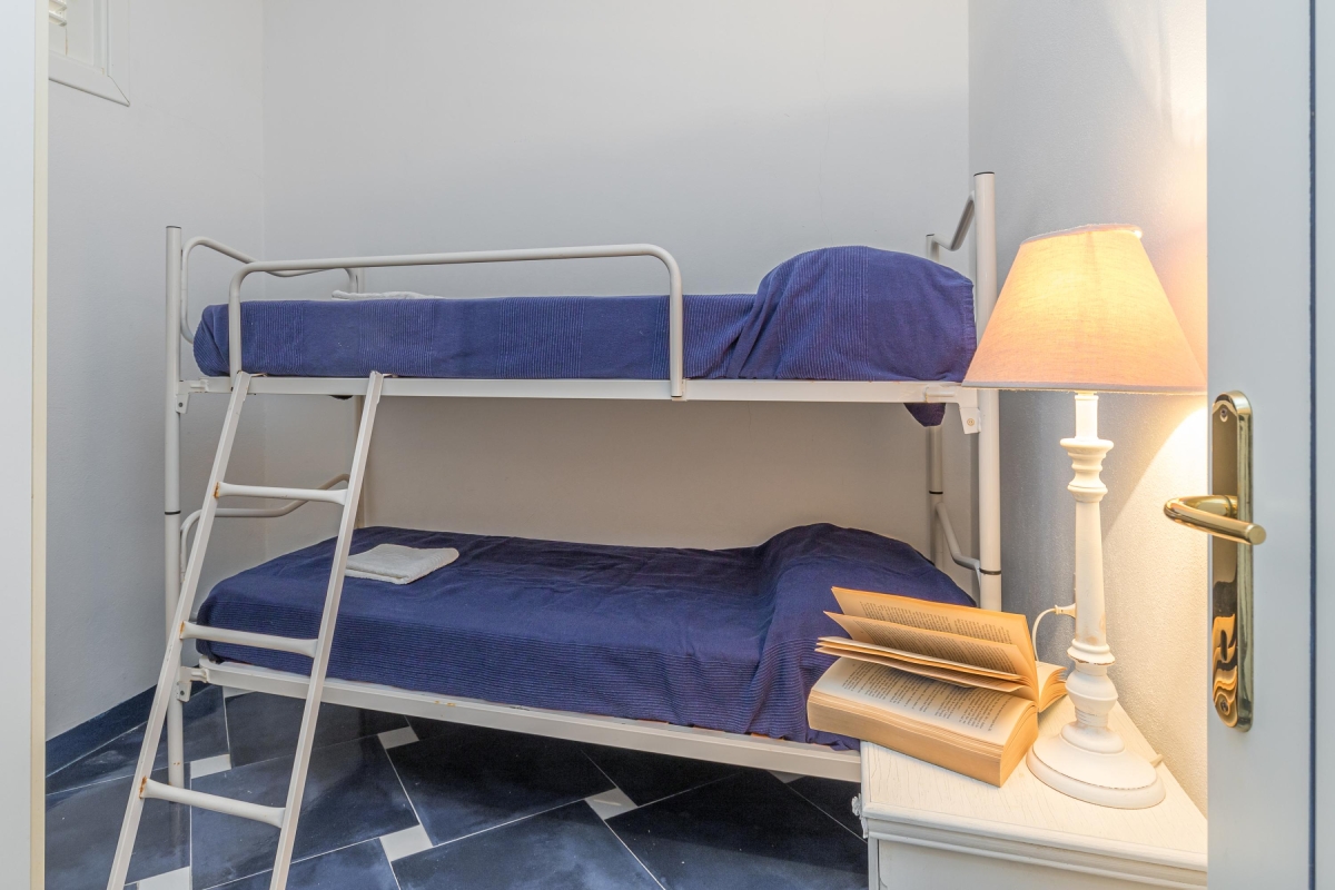 Bedroom 2: The second bedroom is furnished with bunk beds and a large wardrobe