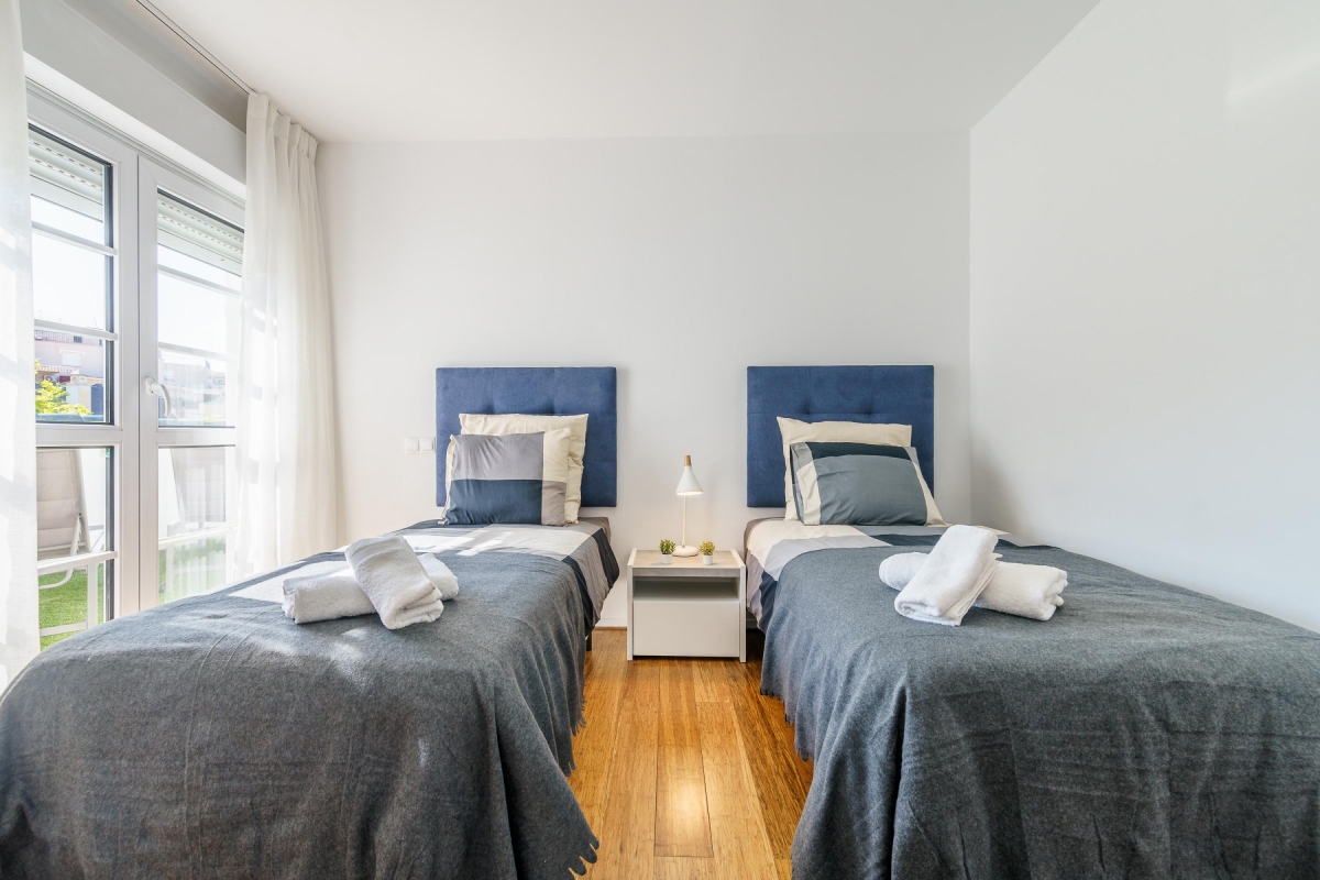 Bedroom 3: An inviting 2 single bedroom with wardrobe and ensuite bathroom and terrace access.