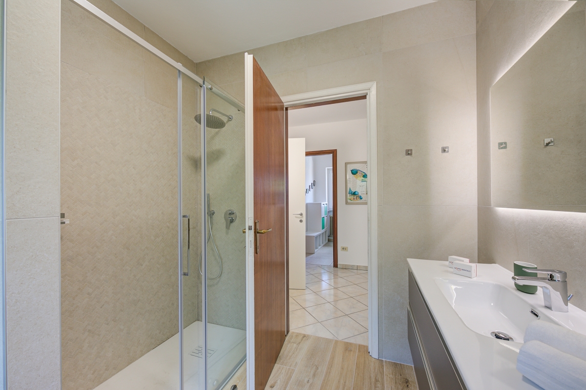 Casa Francesca’s garden is truly stunning, with wonderful views of the lake and the mountains beyond. There are several seating areas, in addition to the shaded terrace. There are sun loungers and deck chairs, an outdoor shower, a more formal seating area on a different terrace and a charming, vine-covered pergola for romantic drinks looking out over the lake.