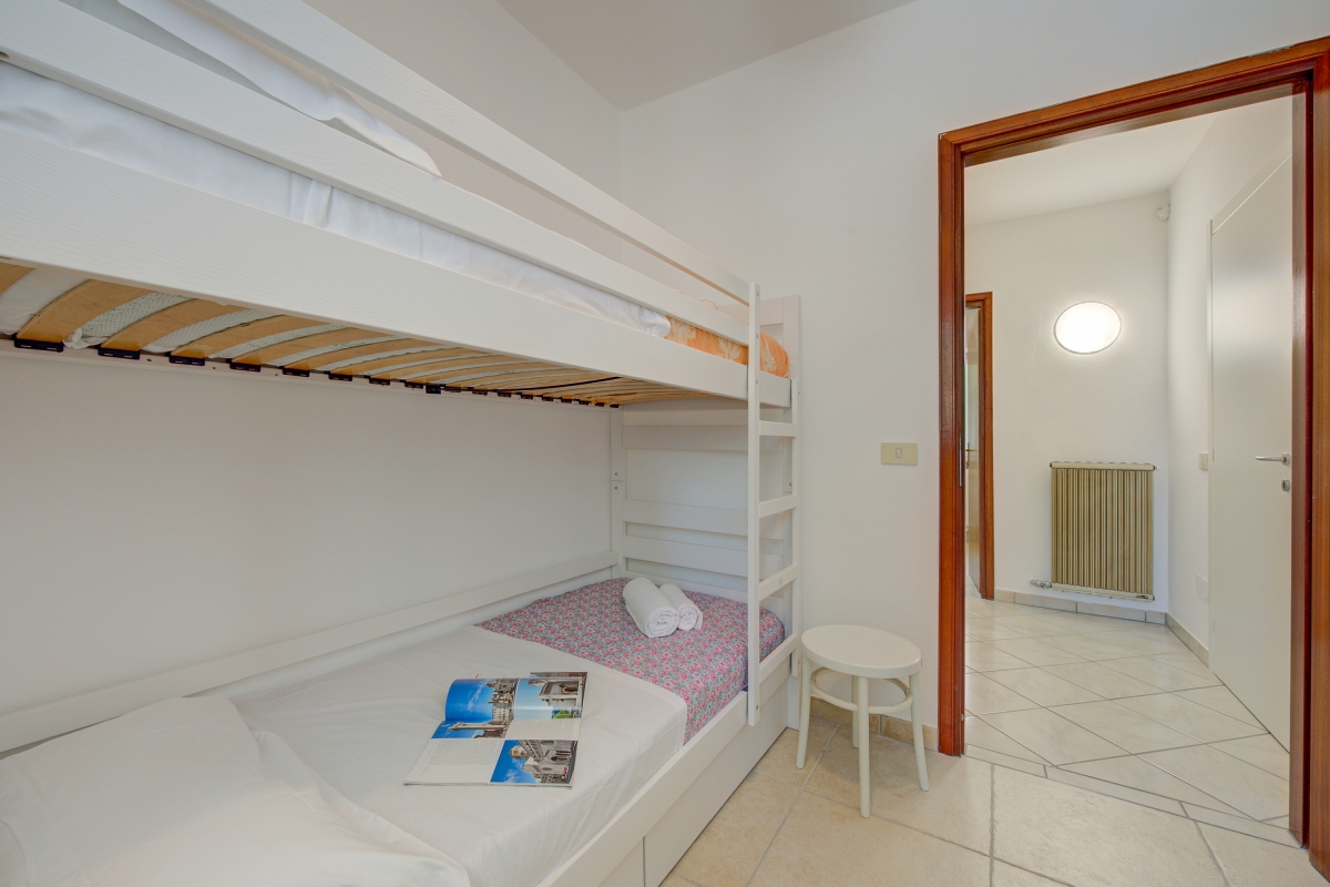 Bedroom 3: This smaller bedroom has a bunk bed, a chest of drawers and lovely lake views.