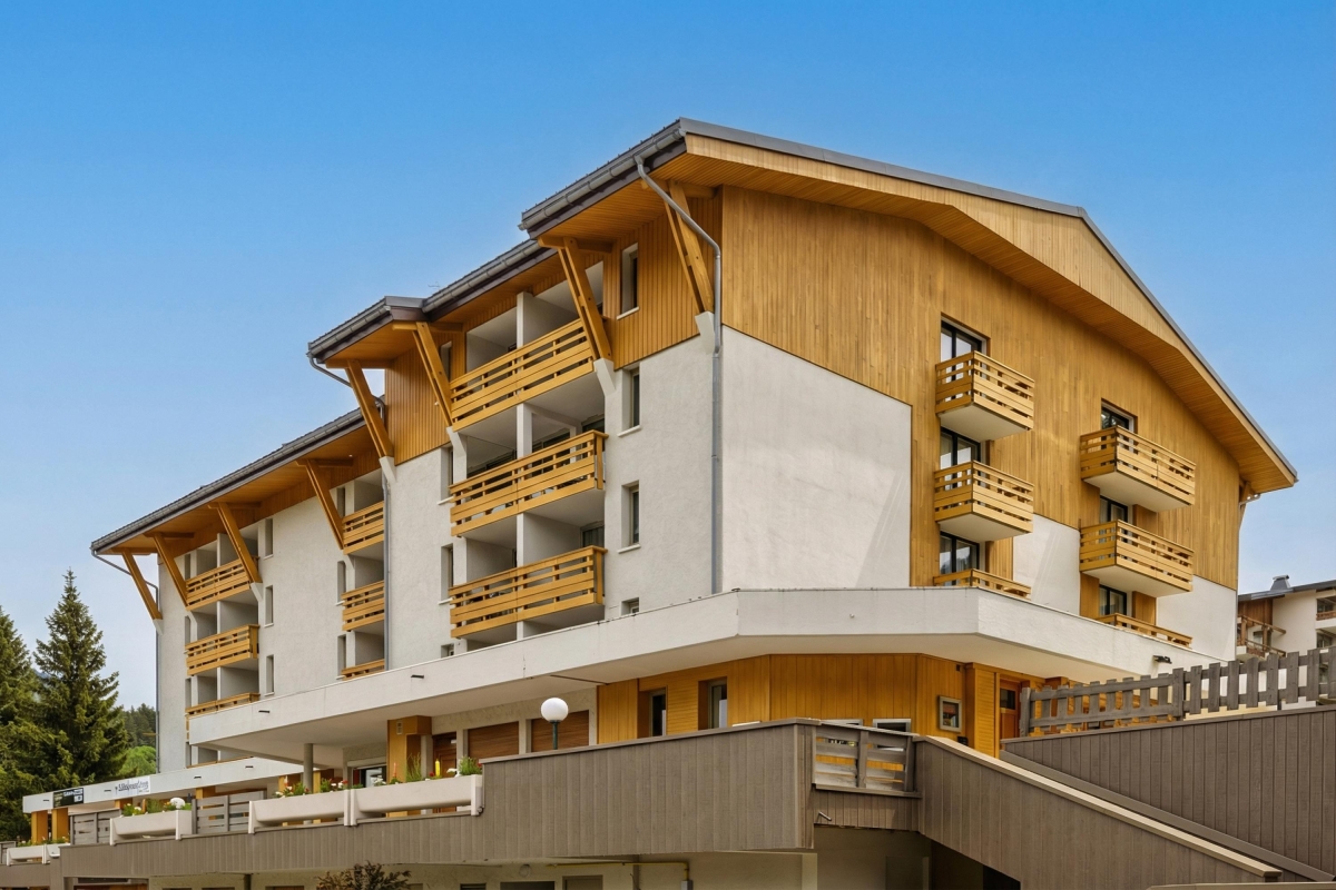 On the ground floor of a striking modern development in central Megève, this studio apartment is the ideal holiday base all year round.