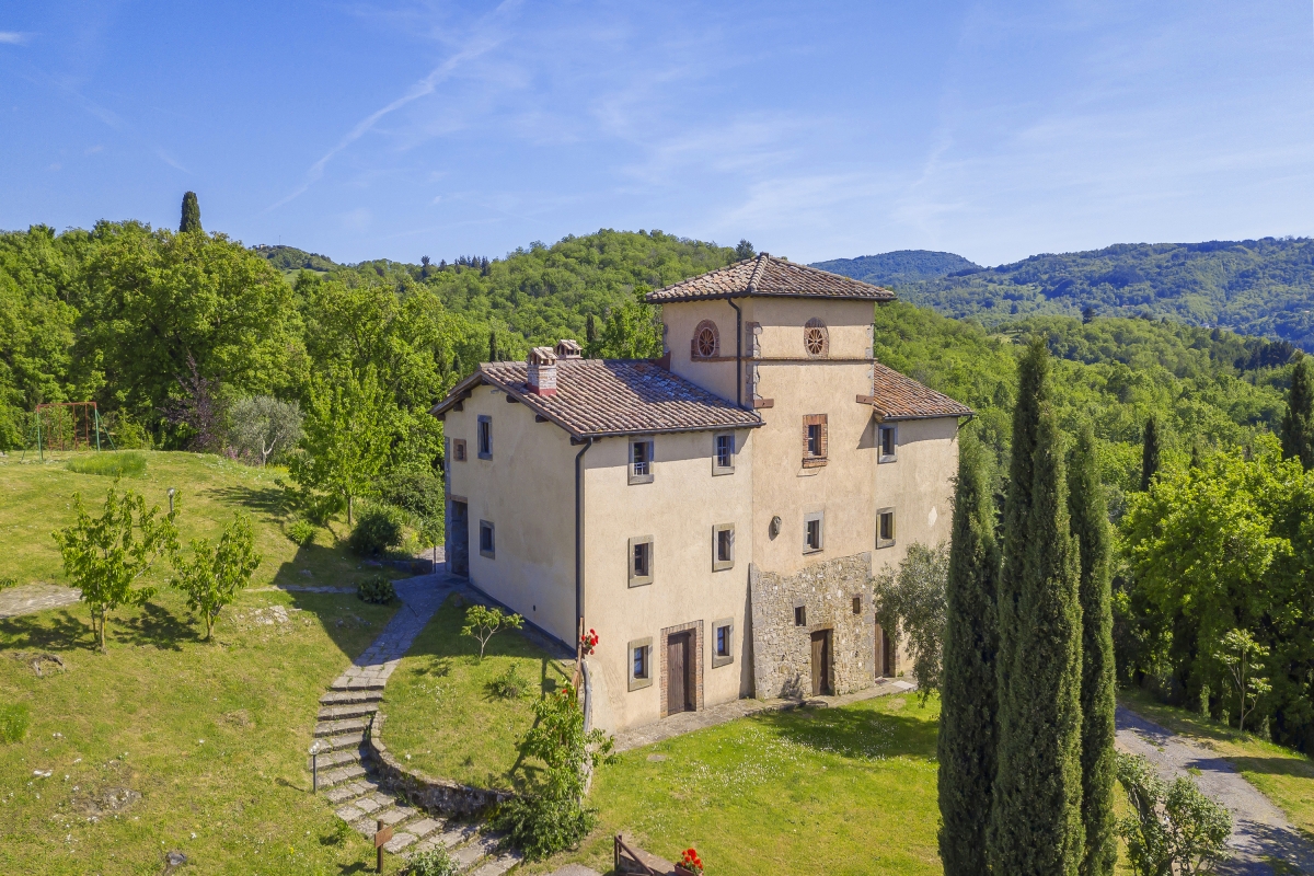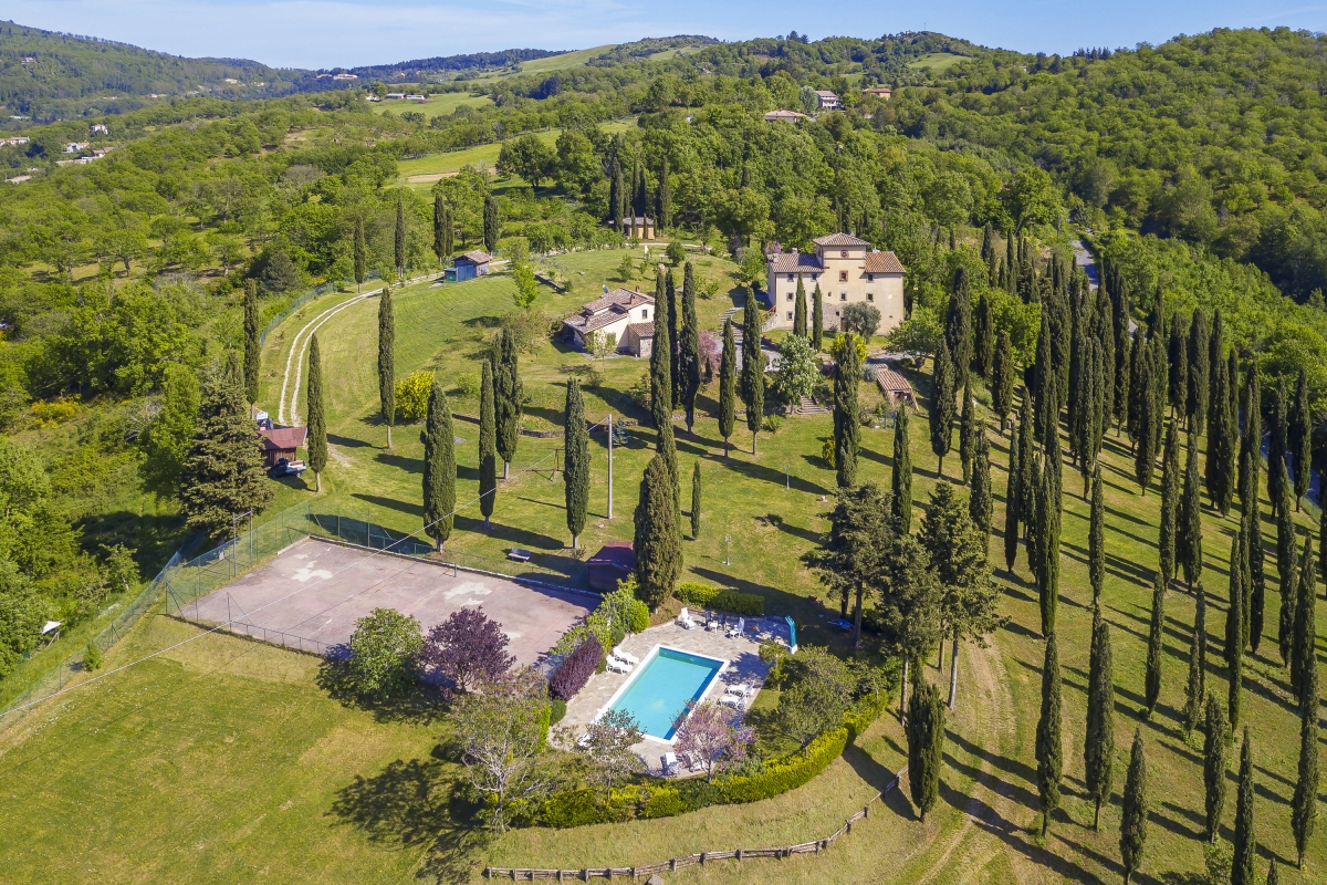 The property is spread over a massive 3 hectares surrounded by Italian cypresses and located at the edge of the woods. It easily accommodates up to 22 guests and offers a large swimming pool, lush open-air spaces, and an exclusive and sun-soaked garden perfectly completed by alfresco dining and BBQ creating a heavenly summer or wintertime atmosphere.