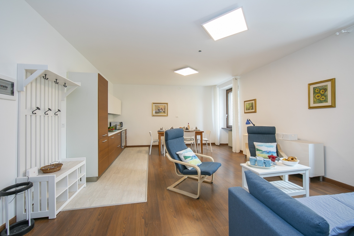 The lovely residence is located within the pedestrianized zone of Riva del Garda, along ‘Via Giuseppe Mazzini’, facing Garibaldi square and the historical La Rocca. On the doorstep, guests will find a host of bars, restaurants, supermarkets and grocery shops to complement their self-catering stay. The local museums, tourist attractions, sailing club and picturesque lido beaches of Spiaggia Sabbioni, Pini Beach and Lido di Riva del Garda are all within a 10-minute walk away.