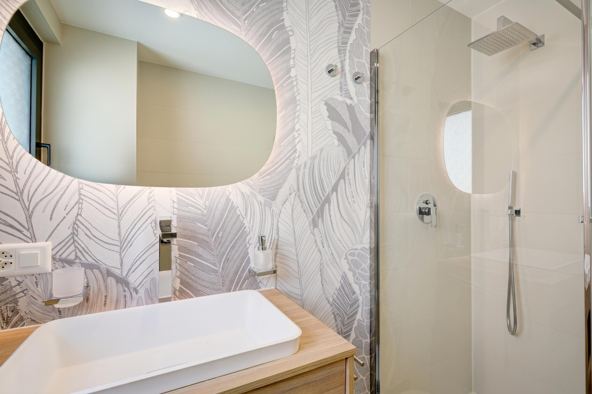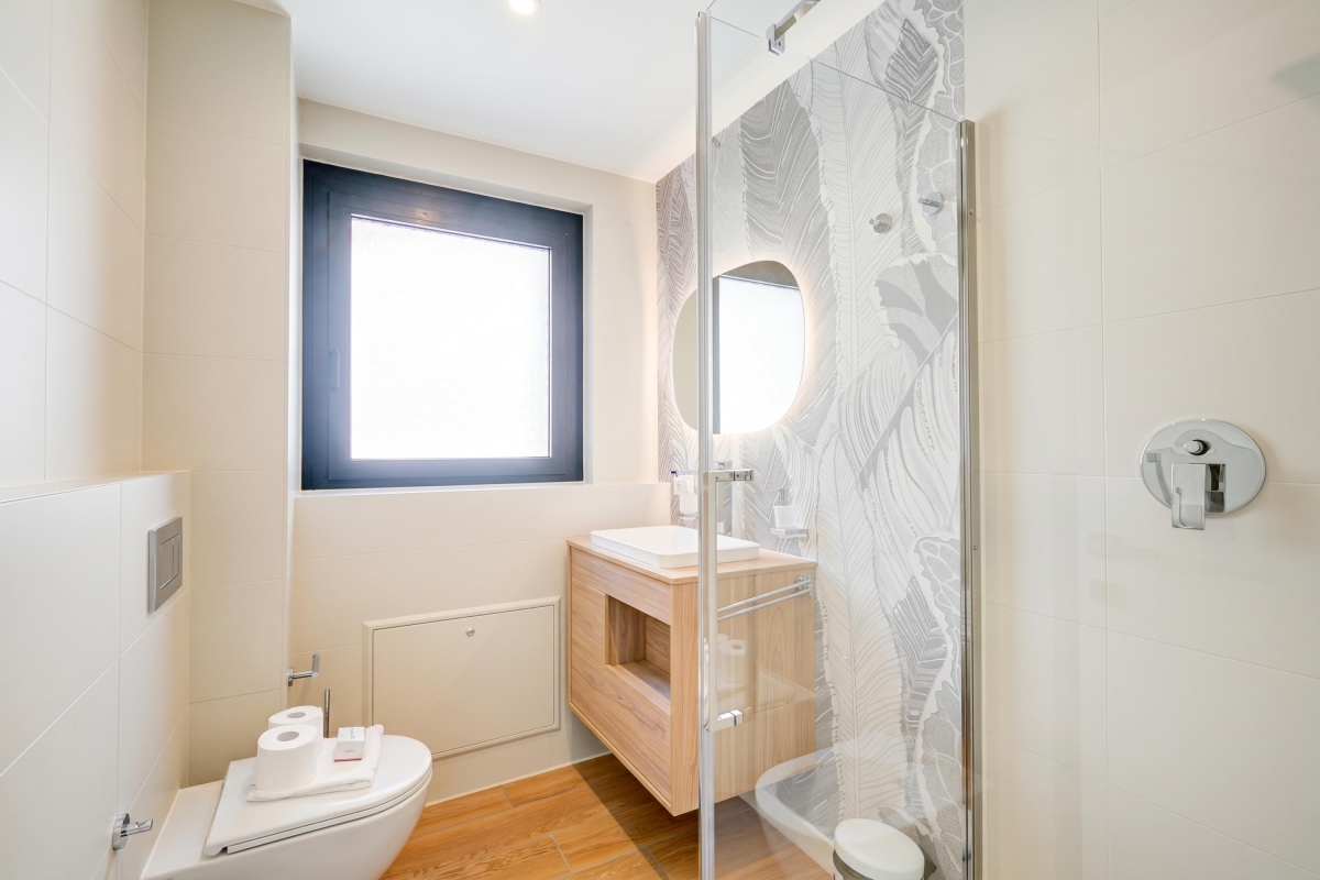 Bathroom 1: Next to the master bedroom this stylish bathroom has a glass shower, large basin, bidet and WC.