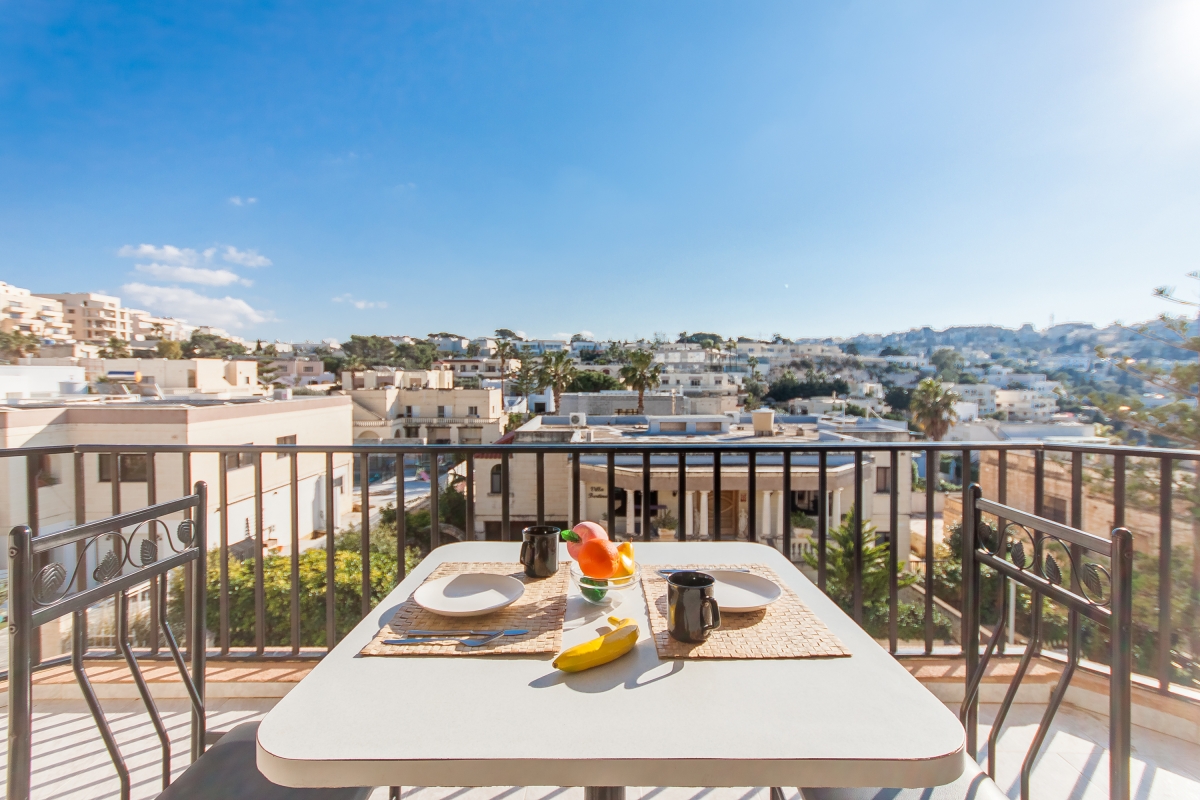 Located in a lovely valley, within easy walking distance to the seashore, this holiday rental in Mellieħa offers a delightfully laid-back stay for up to 4. The apartment is on the second floor of a 3-storey building with lift access and offers panoramic views to enjoy restful unwinding. The sunny pool area is shared and also offers nice sunbathing opportunities to make the most of this sunny island. A private balcony with a vibrant open-air dining space is available for those who like to unwind in an intimate atmosphere.