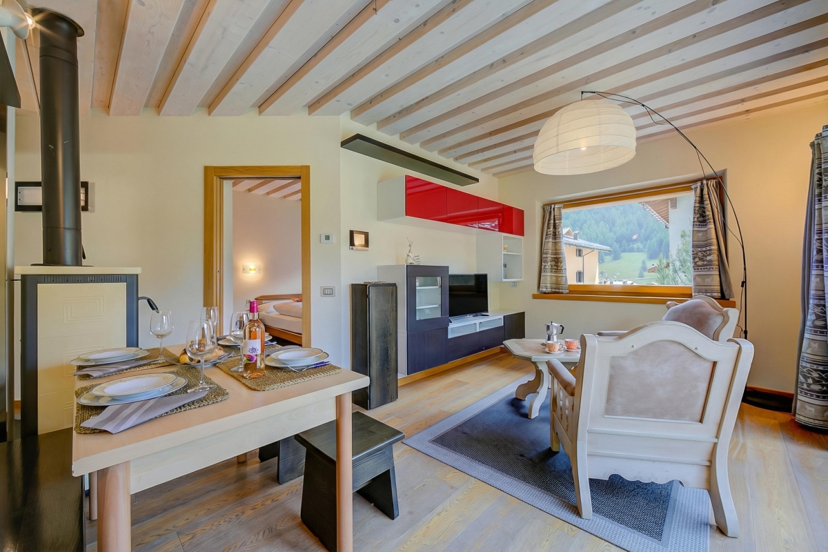 The holiday apartment is ideal for a hassle-free self-catering stay in Livigno as it has a fully serviced supermarket just next door. The amazing and largest ski area, Coresello 3000 is within a 10-minute walk of the apartment, and it is also great for those coming in summer to enjoy the resort as it offers restaurants, summer sports and other activities. The Mottolino Bike park is within convenient driving distance, just 10-minutes from the holiday apartment. Plus, guests can easily enjoy another ski resort–Fontane-Vetta, within a 12-minute drive from here. Those looking for tranquil excursions into nature will find the bike and pedestrian trails of the Stelvio National Park (under 1 hour) perfect for them. Meanwhile, shopping lovers can make the most of the duty-free shopping at Livigno.