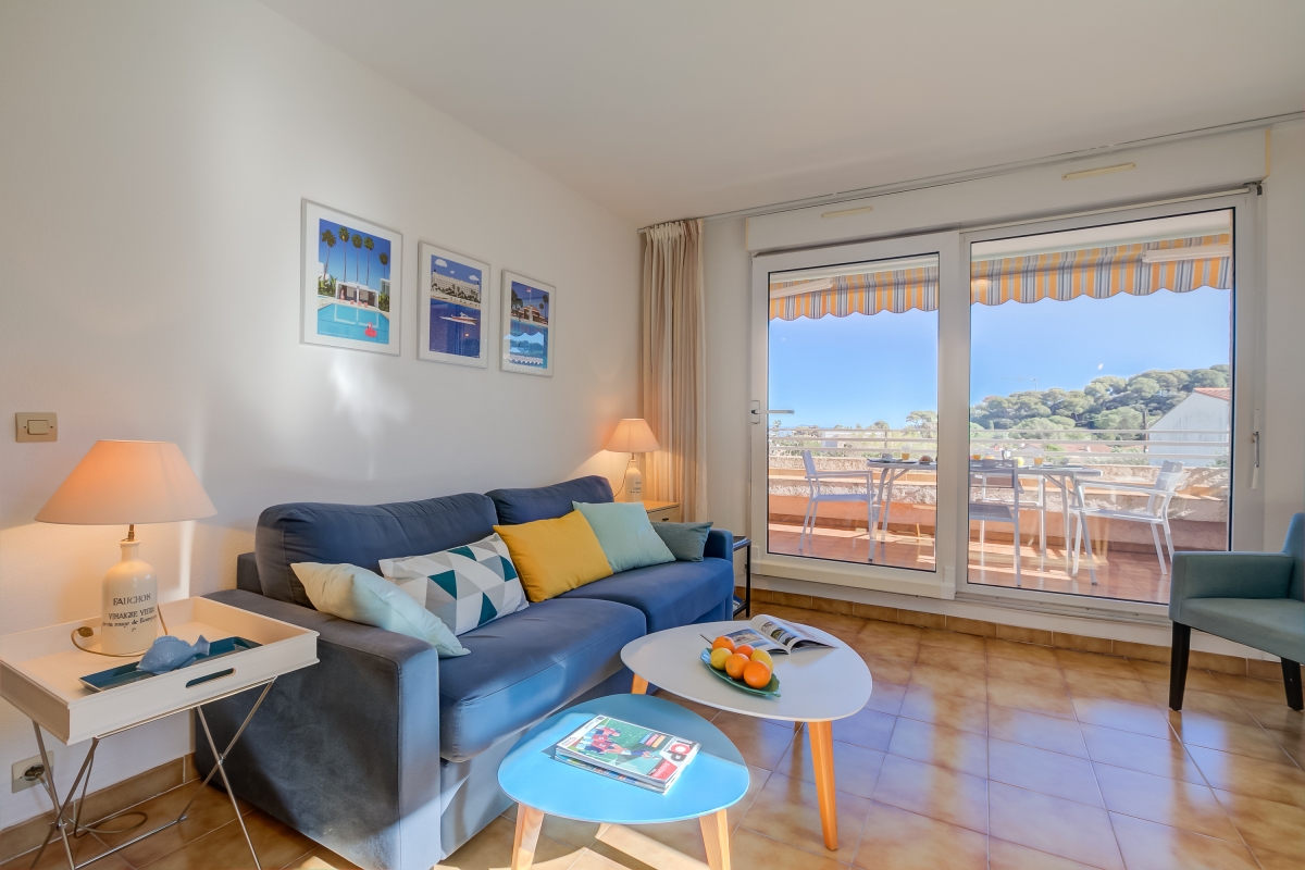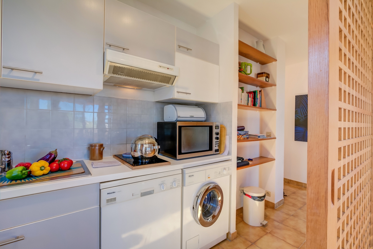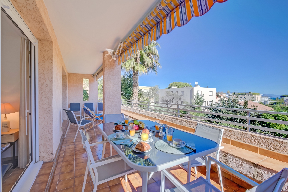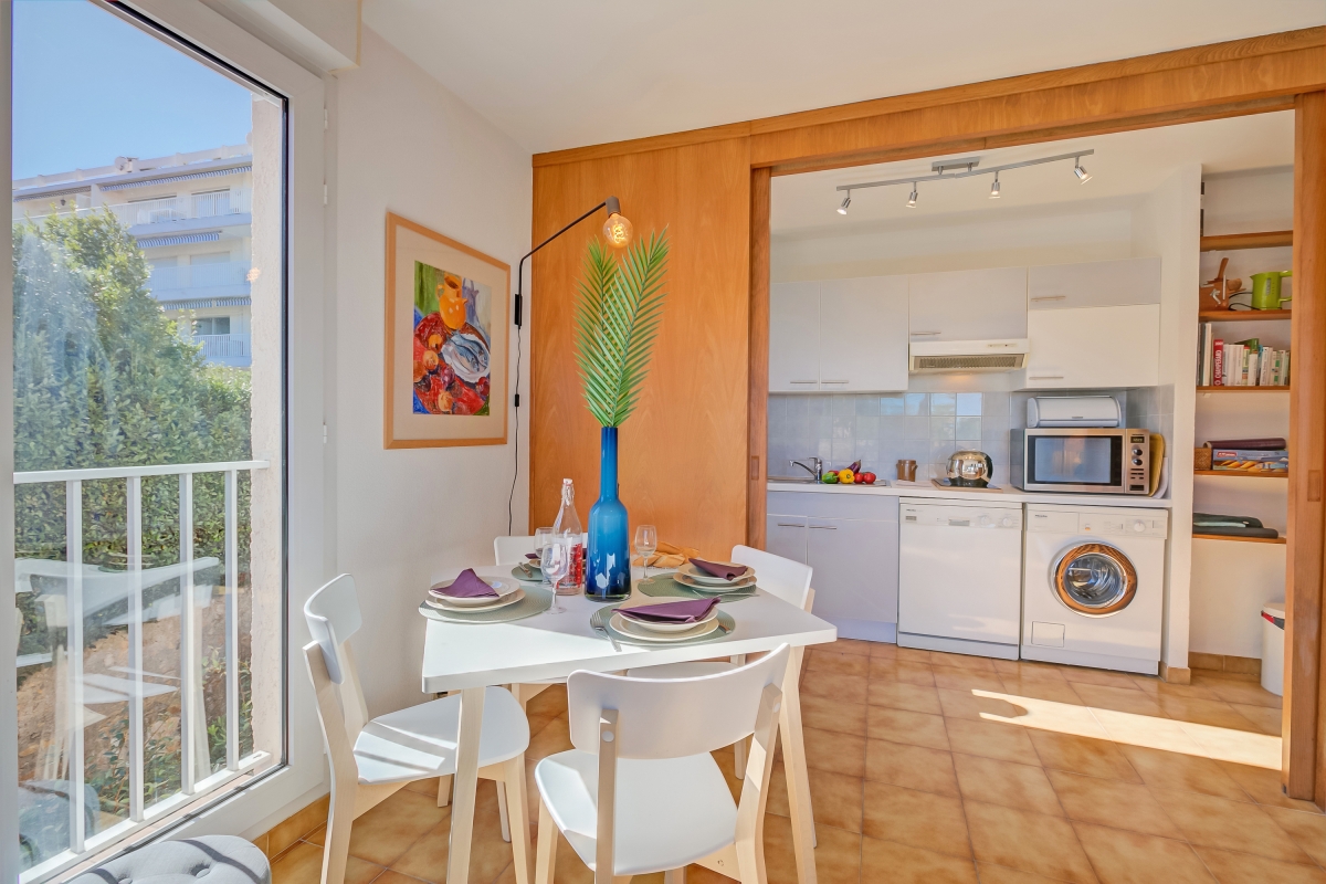 Located within a charming residence complete with a shared swimming pool and a beautiful garden, this rental offers everything you need for a relaxing and comfortable getaway. Inside, the living room and fully equipped kitchen provide a comfortable space for relaxation, while the superb terrace offers breathtaking views of Garoupe's lighthouse, chapel, and the sparkling sea. Kitchen utilities include a dishwasher, microwave, american style coffee machine, cooker hob, and fridge. With a bedroom featuring a double bed and ample storage, a small single bedroom, as well as a sofa bed in the living room, this apartment accommodates both couples and families.