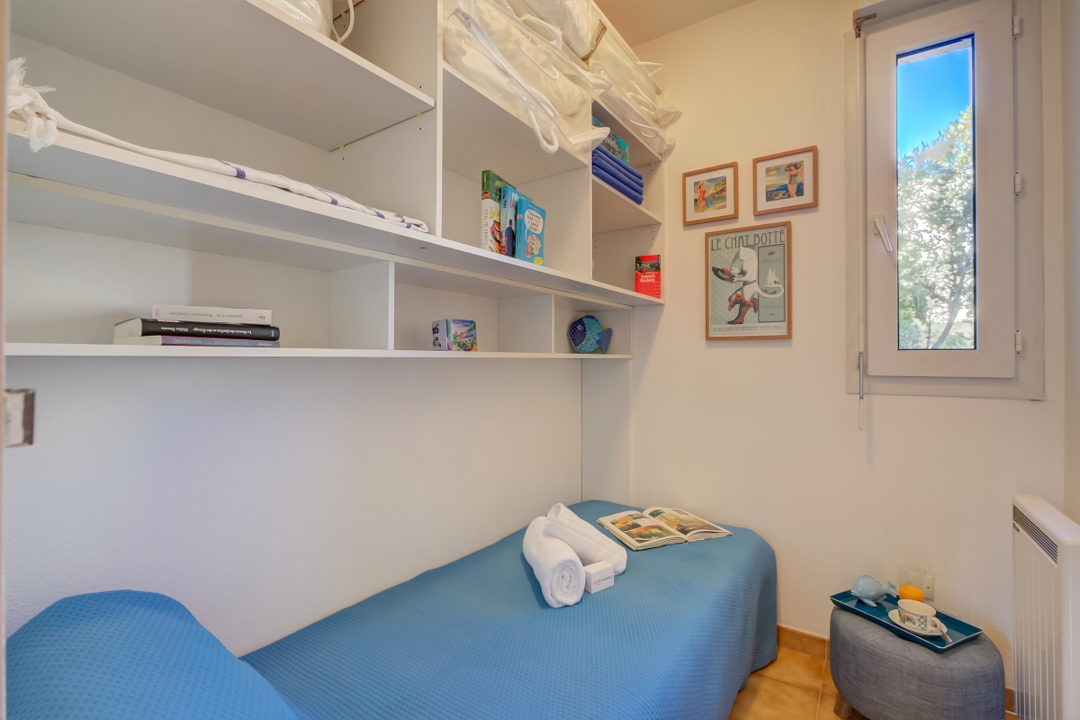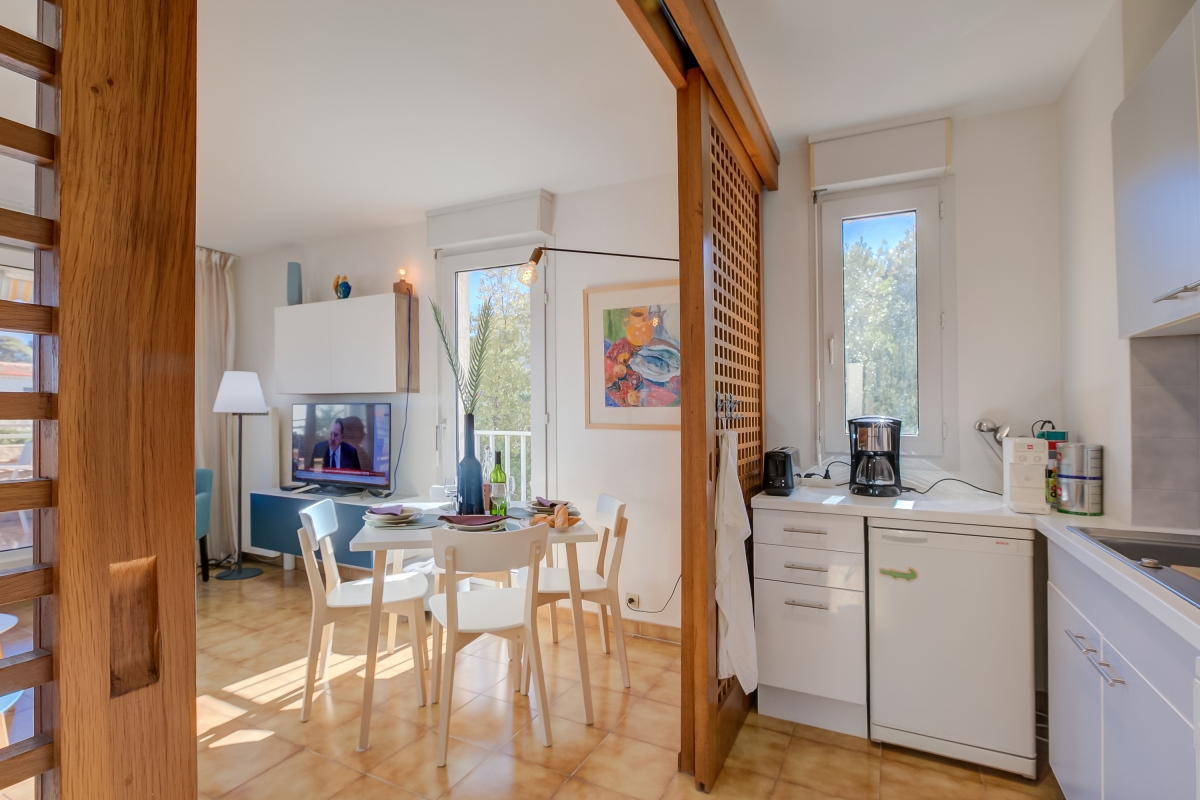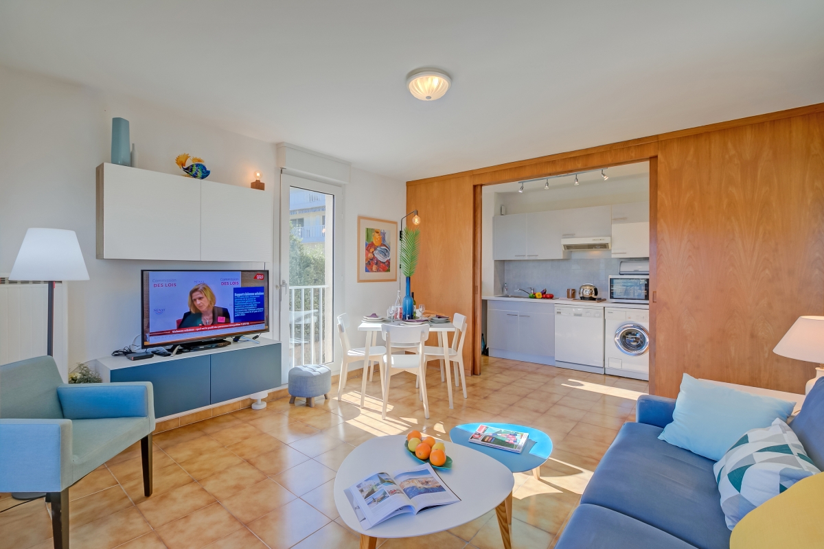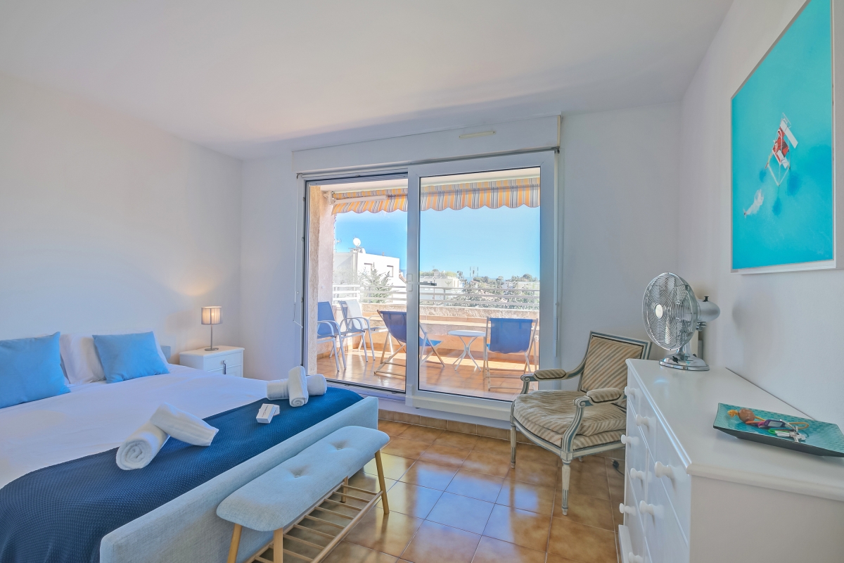 Located within a charming residence complete with a shared swimming pool and a beautiful garden, this rental offers everything you need for a relaxing and comfortable getaway. Inside, the living room and fully equipped kitchen provide a comfortable space for relaxation, while the superb terrace offers breathtaking views of Garoupe's lighthouse, chapel, and the sparkling sea. Kitchen utilities include a dishwasher, microwave, american style coffee machine, cooker hob, and fridge. With a bedroom featuring a double bed and ample storage, a small single bedroom, as well as a sofa bed in the living room, this apartment accommodates both couples and families.
