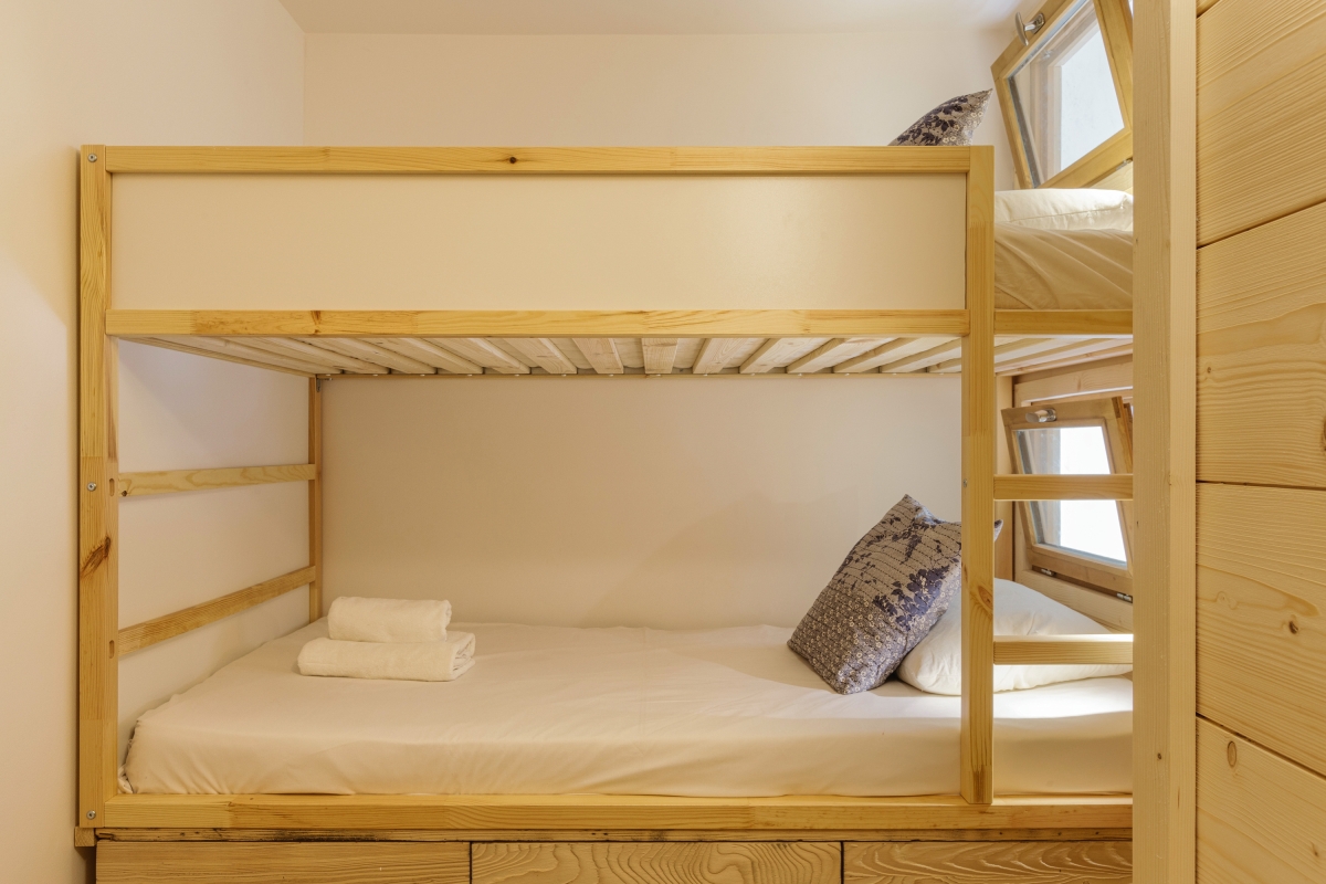 Bedroom 2: This cosy bedroom has a bunk bed and a children’s table.