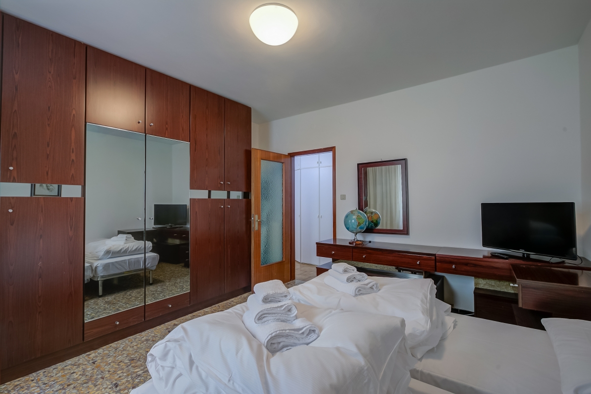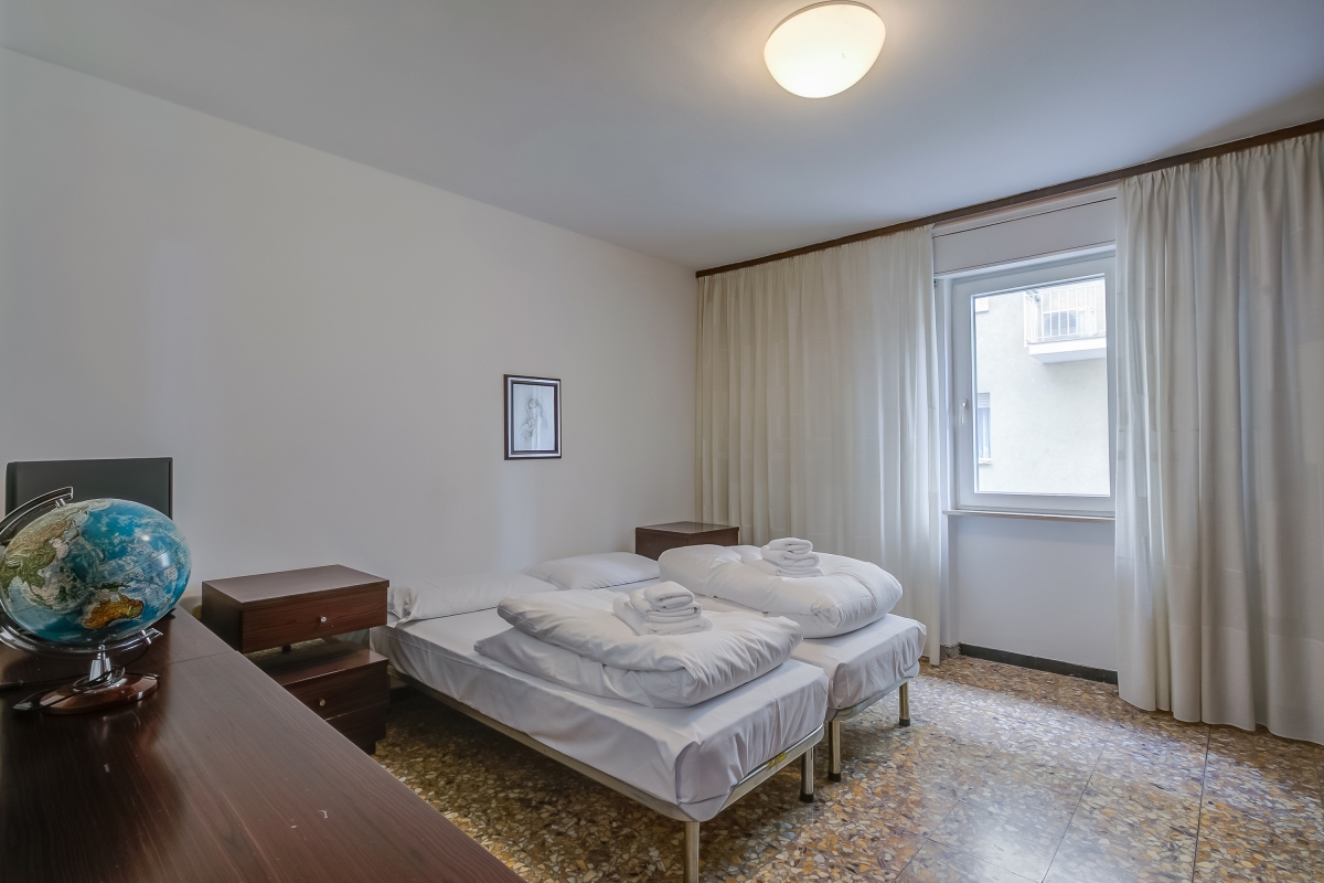 Bedroom 2: Is furnished with two single beds and a large wardrobe.