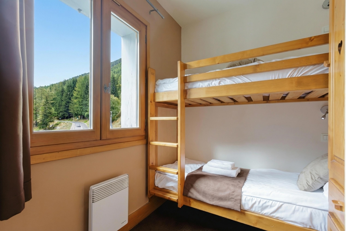 Bedroom 2: This bright children’s bedroom has a wooden bunk bed.