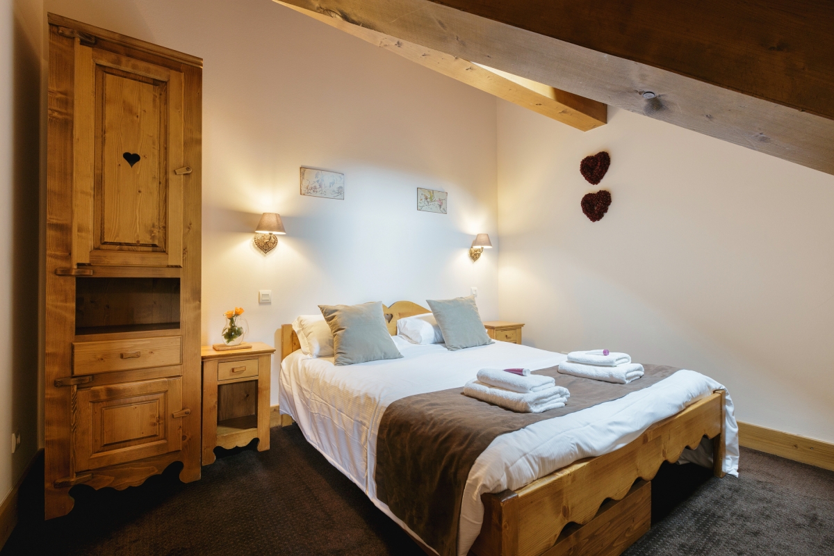 Bedroom 1: The master bedroom, tucked under the eaves, has a double bed and a wardrobe.