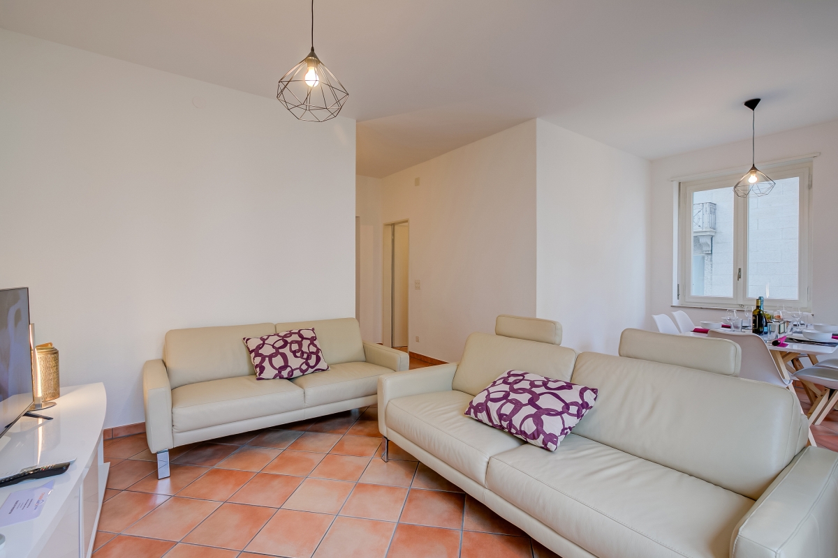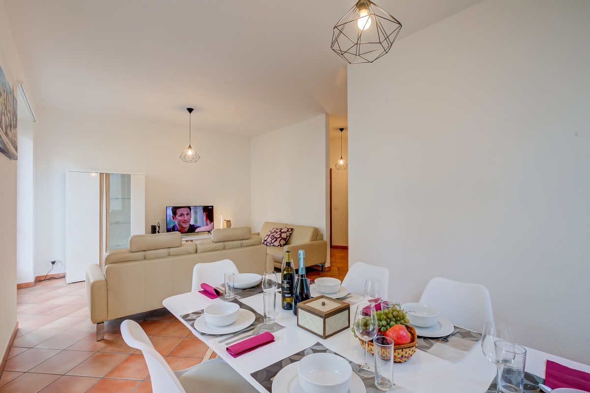 Situated just a 10-minute walk from the Castles of Bellinzona, this first-floor holiday apartment with lift access and modern facilities is perfect for a carefree break in the capital of Ticino. The 3-bedroom apartment offers everything you would need for a relaxing and explorative experience, including an excellent location and a splendid balcony with open-air dining. Inside, the apartment has a bright living room with 2 comfy sofas and a Smart TV, alongside a window-side dining area. This is complemented by a fully-equipped kitchen for an absolutely carefree stay. Guests have a dishwasher, microwave, oven, fridge, toaster, Nespresso machine and induction hob at their disposal.