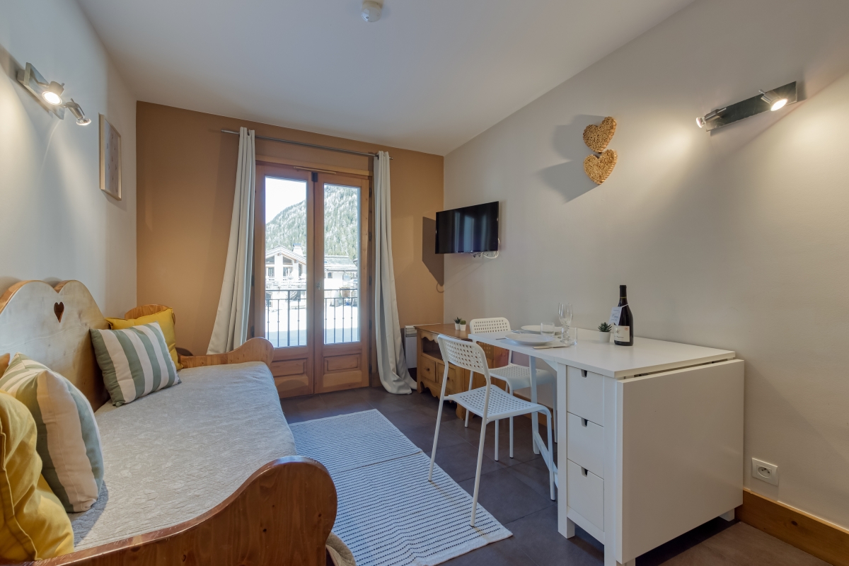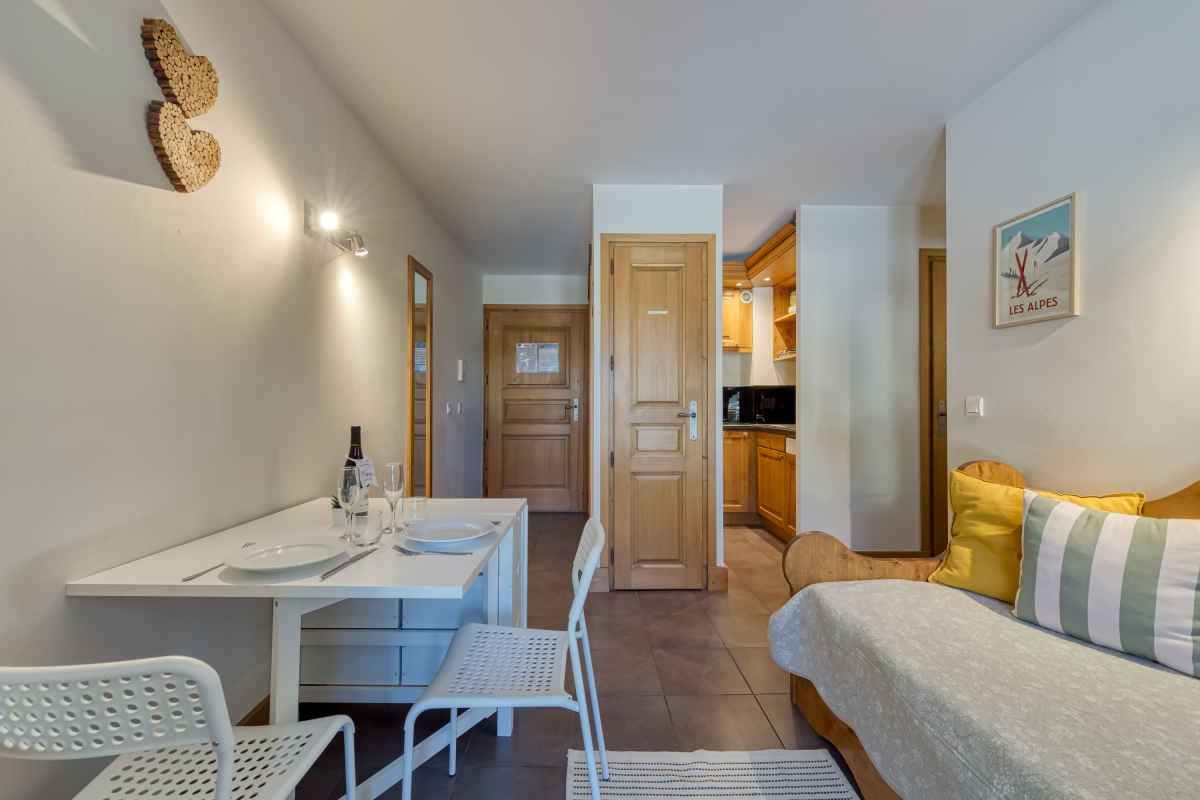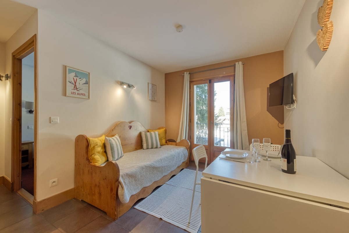 A contemporary, ground-floor apartment for 3 people, in a family-friendly residence, in the heart of nature, this makes an ideal base for alpine adventures throughout the year.