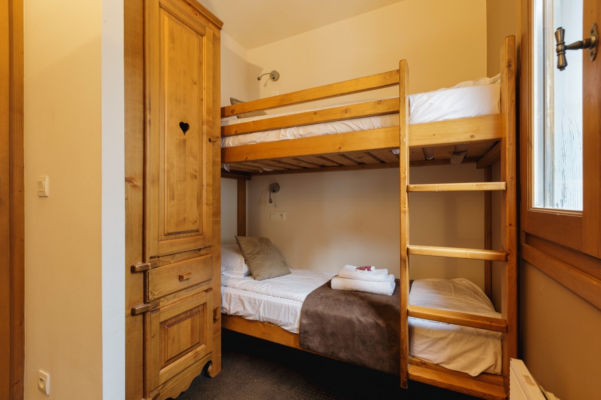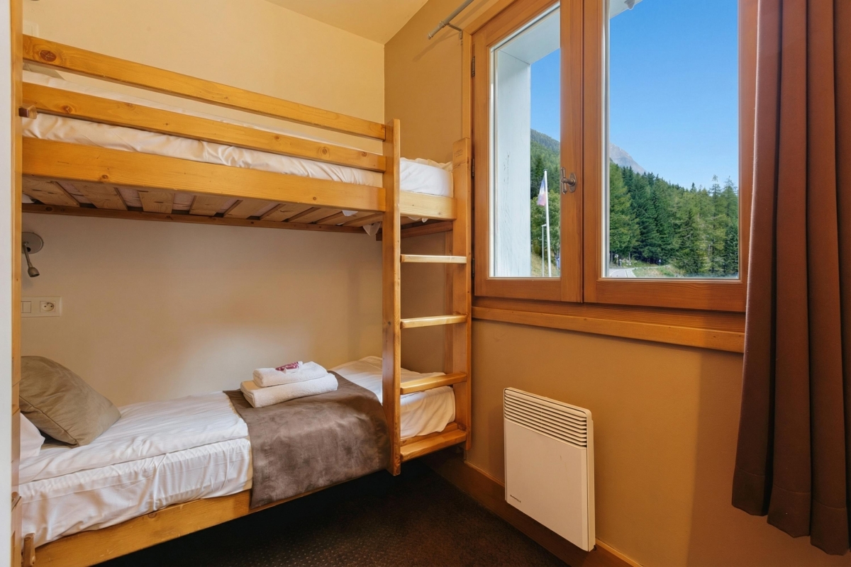 Bedroom 2: A peaceful room with great mountain views and a bunk bed.