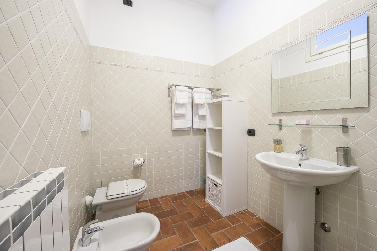 The apartment has two bathrooms each with a standalone shower, wash basin, WC and bidet. One bathroom is en suite.